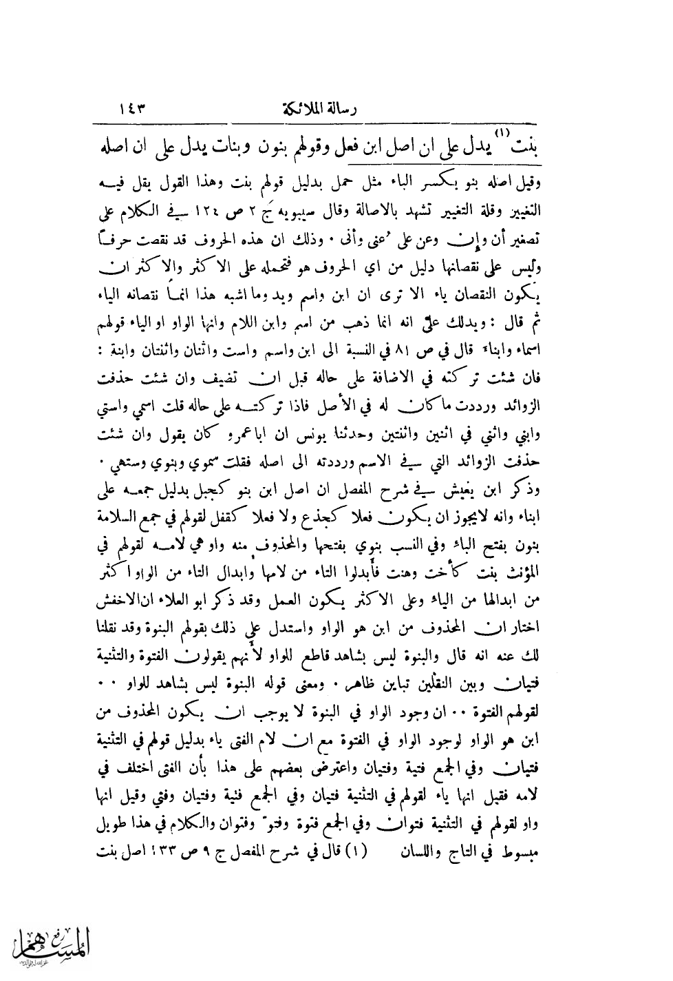 (¬2) قال في شرح المفصل ج 9 ص 133 أصل بنت