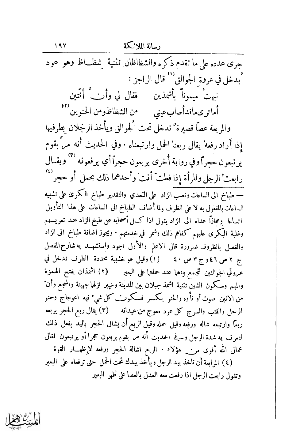 (¬1) وقيل هو خشيبة محددة الطرف تدخل في عروتي الجوالقين لتجمع بينهما عند حملهما على البعير.