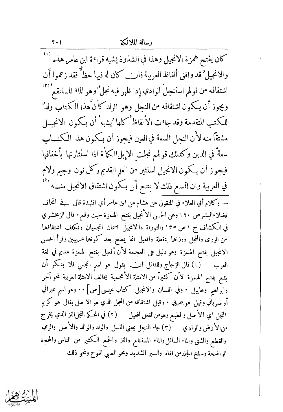 (¬1) قال الزجاج وللقائل أن يقول هو اسم اعجمي فلا ينكر أن يقع بفتح الهمزة لأن كثيرًا من الأمثلة الأعجمية يخالف الأمثلة العربية نحو آجر وإبراهيم وهابيل. وفي اللسان والإنجيل كتاب عيسى [ص] .. وهو اسم عبراني أو سرياني وقيل هو عربي. وقيل اشتقاقه من النجل الذي هو الأصل يقال هو كريم النجل أي الأصل والطبع وهو من الفعل افعيل.