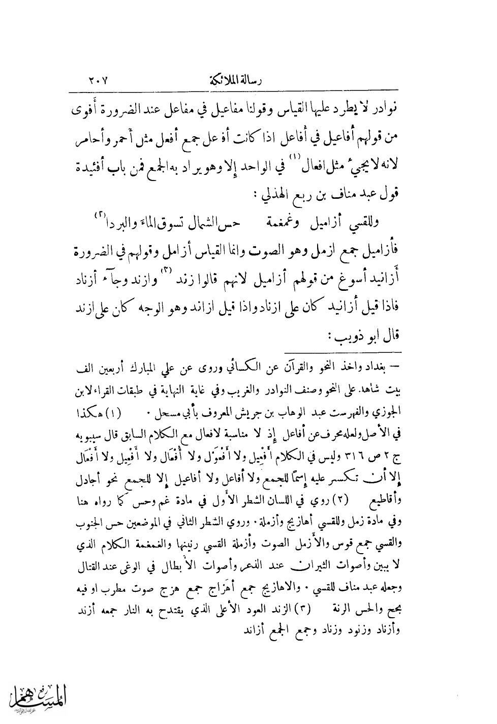 (¬1) هكذا في الأصل ولعلع محرف عن افاعل إذ لا مناسبة لافعال مع الكلام السابق قال سيبويه ج 2 ص 316 وليس في الكلام أفعيل ولا أفعول ولا أفعال ولا أفعيل ولا أفعال إلا أن تكسر عليه إسماً للجمع ولا أفعال ولا أفعايل إلا للجمع نحو أجادل وأقاطيع.
