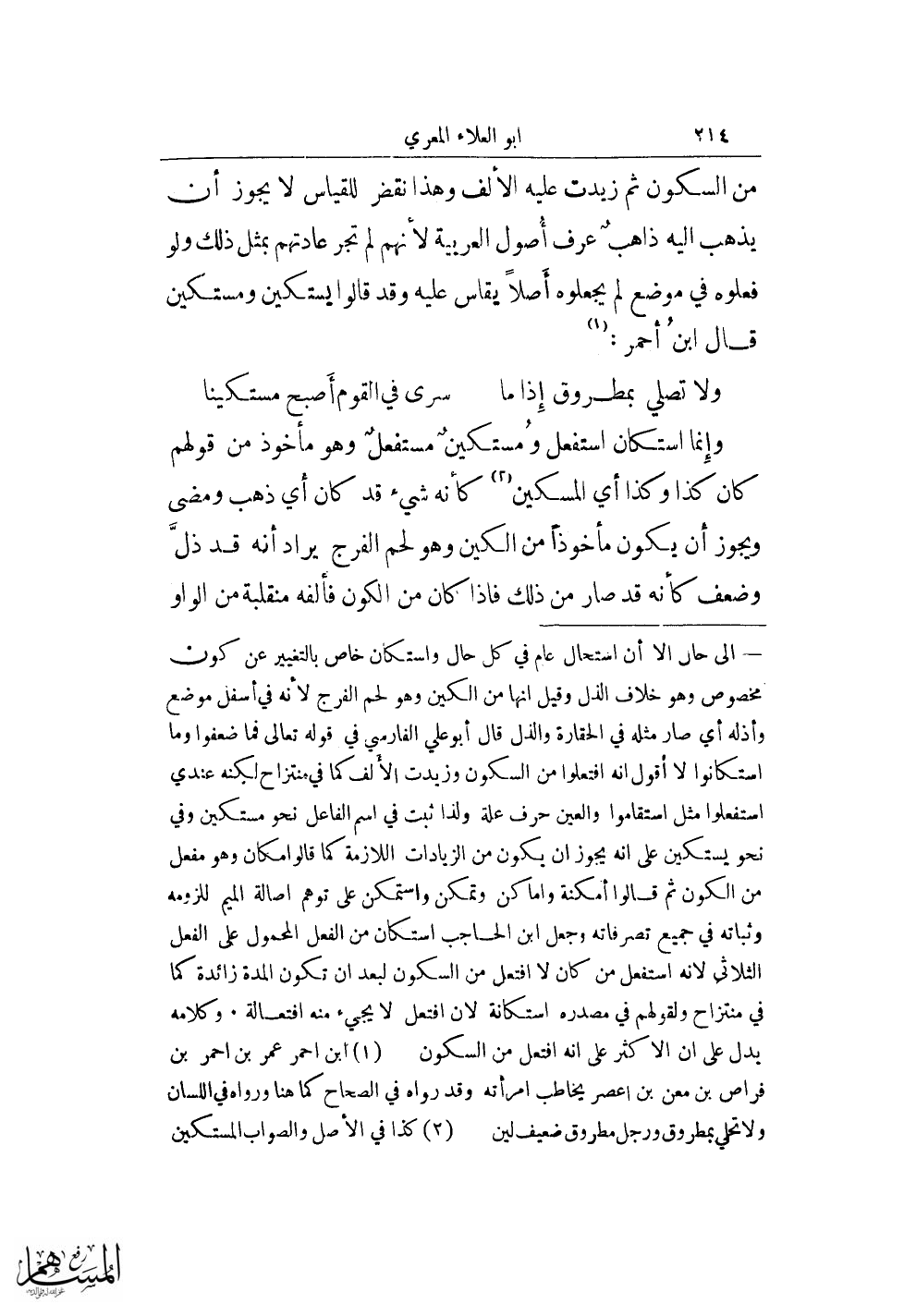 من السكون ثم زيدت عليه الألف وهذا نقض للقياس لا يجوز أن يهذب إليه ذاهب عرف أصول العربية لأنهم لم تجر عادتهم بمثل ذلك ولو فعلوه في موضع لم يجعلوه أصلًا يقاس عليه وقد قالوا يستكين ومستكين قال ابن أحمر (¬1):