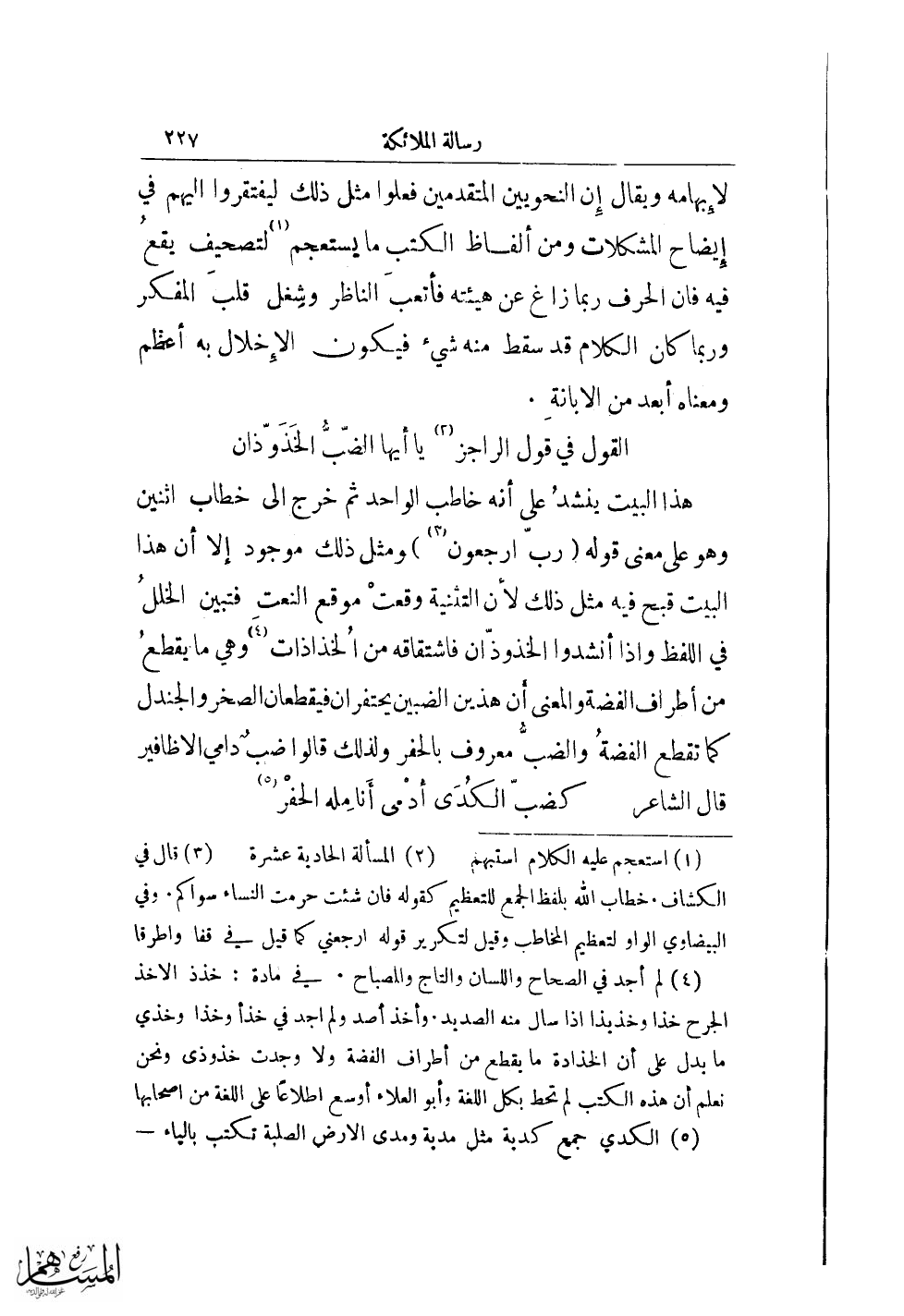 القول في قول الراجز (¬2) يا أيها الضّب الخذوّ ذان