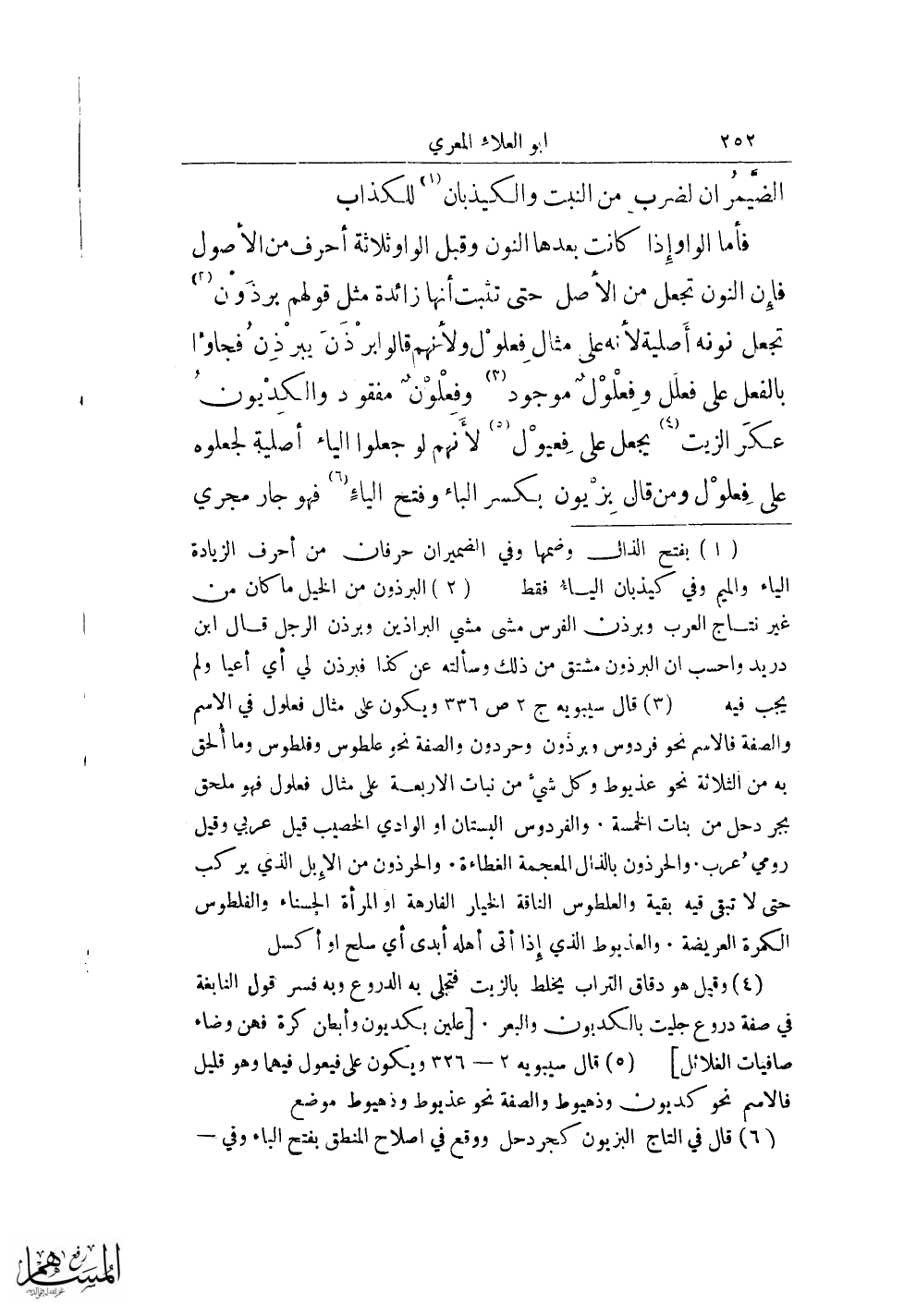 (¬3) قال سيبويه ج 2 ص 336 ويكون على مثال فعلول في الاسم والصفة فالاسم نحو فردوس وبرذون وحردون والصفة نحو علطوس وفلطوس وما ألحق به من الثلاثة نحو عذبوط وكل شيء من نبات الأربعة على مثال فعلول فهو ملحق بجر دحل من بنات الخمسة. والفردوس البستان أو الوادي الخصيب قيل عربي وقيل رومي عرب والحرذون بالذال المعجمة الغطاءة. والحرذون من الإبل الذي يركب حتى لا تبقى فيه بقية والعلطوس الناقة الخيار الفارهة أو المرأة الحسناء والفلطوس الكمرة العريضة. والعذبوط الذي إذا أتى أهله أبدى أي سلح أو أكسل
