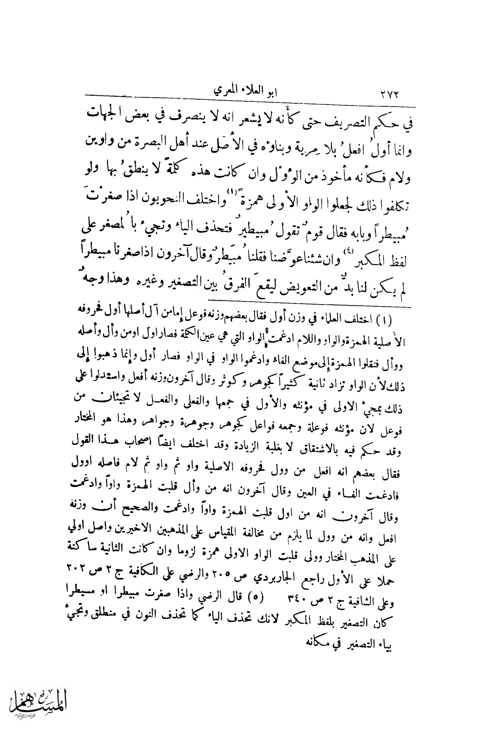 (¬2) قال الرضي وإذا صغرت مبيطرا أو مسيطرا كان التصغير بلفظ المكبر لأنك تحذف الياء كما تحذف النون في منطلق وتجيء بياء التصغير في مكانه