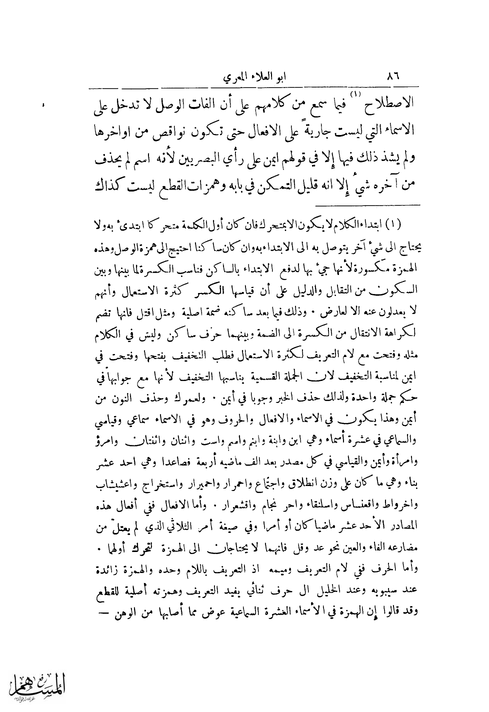 الاصطلاح (¬1) فيما سمع من كلامهم على أن الفات الوصل لا تدخل على الأسماء التي ليست جاريةً على الأفعال حتى تكون نواقص من أواخرها ولم يشد ذلك فيها إلا في قولهم ايمن على رأي البصريين لأنه اسم لم يحذف من آخر شي إلا أنه قليل التمكن في بابه وهمزات القطع ليست كذاك