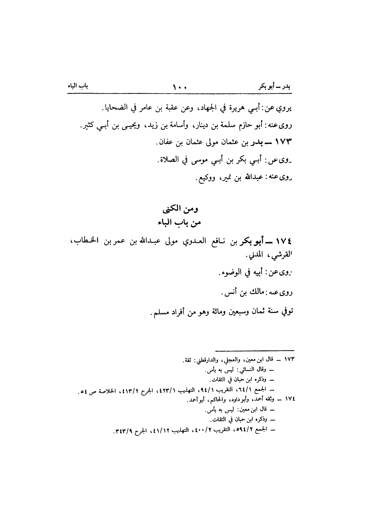 174 - أَبُو بكر بن نَافِع الْعَدوي مولى عبد الله بن عمر بن الْخطاب الْقرشِي الْمدنِي