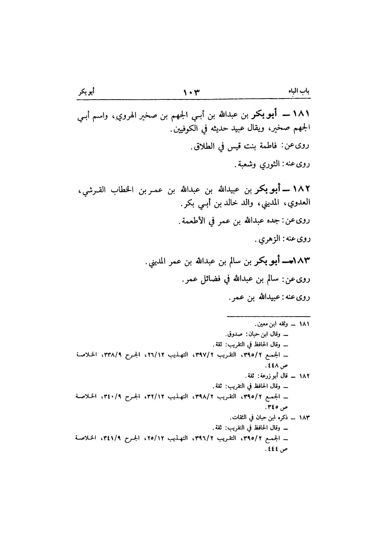 183 - أَبُو بكر بن سَالم بن عبد الله بن عمر الْمَدِينِيّ