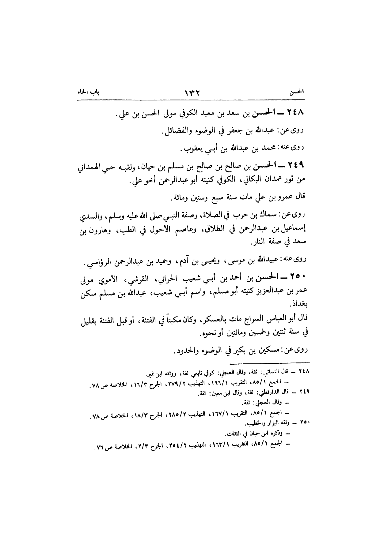 249 - الْحسن بن صَالح بن صَالح بن مُسلم بن حَيَّان ولقبه حَيّ الْهَمدَانِي من ثَوْر هَمدَان الْبكالِي الْكُوفِي كنيته أَبُو عبد الرحمن أَخُو عَليّ