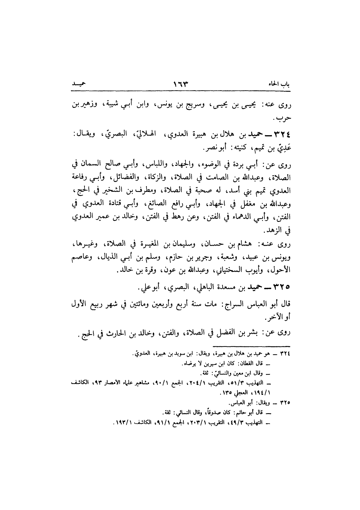 324 - حميد بن هِلَال بن هُبَيْرَة الْعَدوي الْهِلَالِي الْبَصْرِيّ وَيُقَال عدي بن تَمِيم كنيته أَبُو نصر