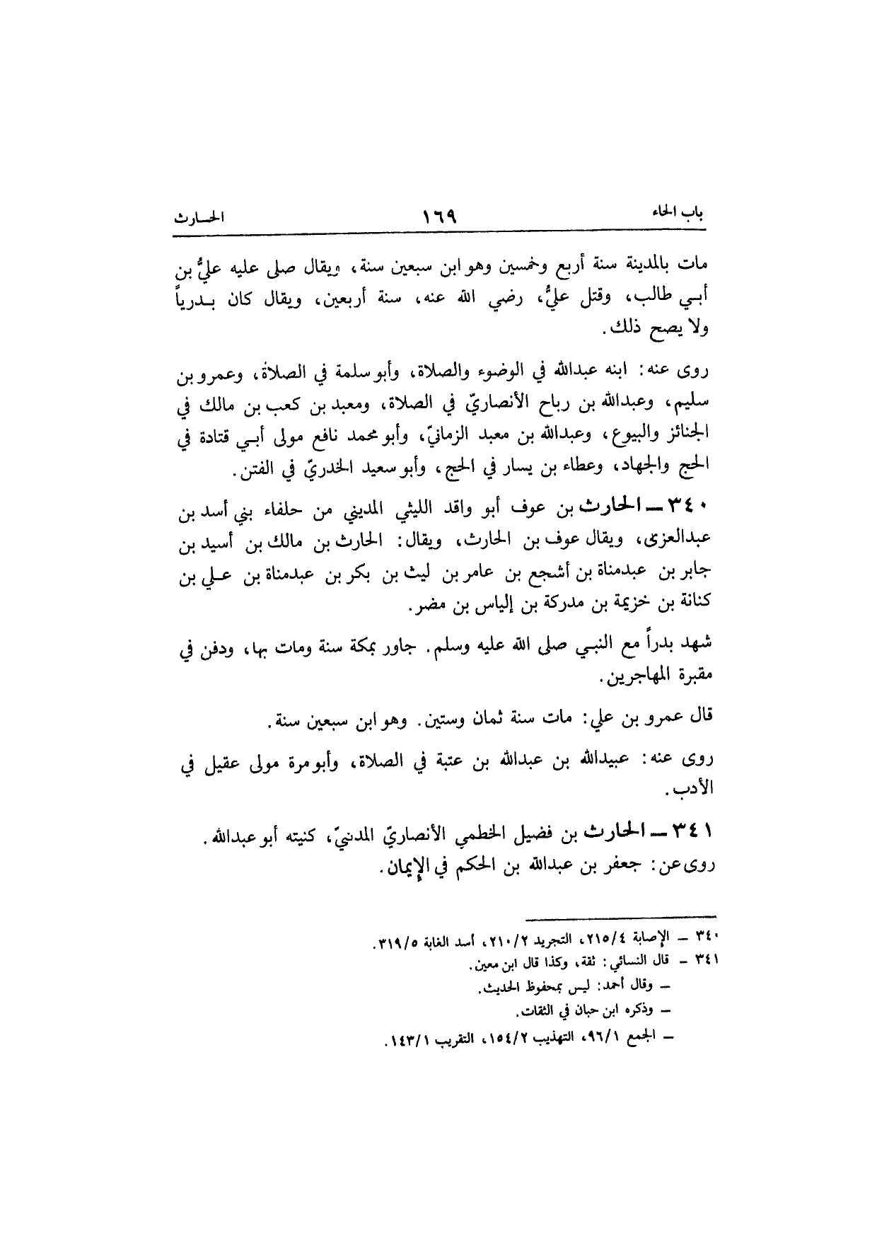 340 - الْحَارِث بن عَوْف أَبُو وَاقد اللَّيْثِيّ الْمَدِينِيّ من حلفاء بني أَسد بن عبد العزى وَيُقَال عَوْف بن الْحَارِث وَيُقَال الْحَارِث بن مَالك بن أسيد بن جَابر بن عبد مَنَاة بن أَشْجَع بن عَامر بن لَيْث بن بكر بن عبدمناة بن عَليّ بن كنَانَة بن خُزَيْمَة بن مدركة بن إلْيَاس بن مُضر