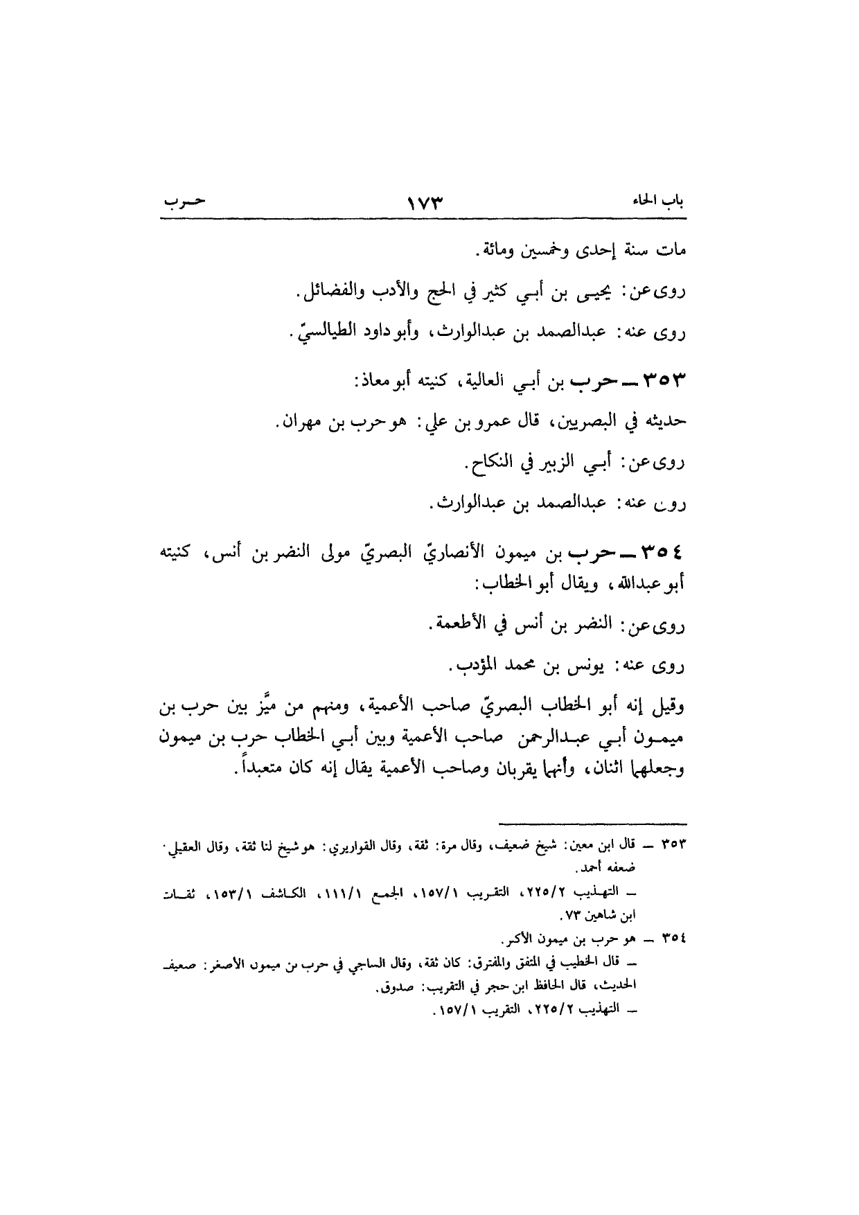 354 - حَرْب بن مَيْمُون الْأنْصَارِيّ الْبَصْرِيّ مولى النَّضر بن أنس كنيته أَبُو عبد الله وَيُقَال أَبُو الْخطاب