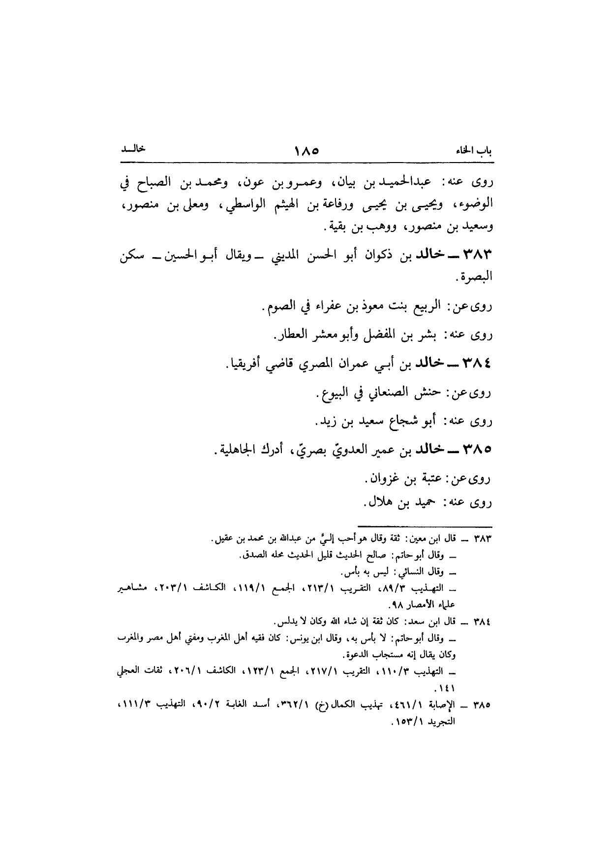 385 - خَالِد بن عُمَيْر الْعَدوي بَصرِي أدْرك الْجَاهِلِيَّة