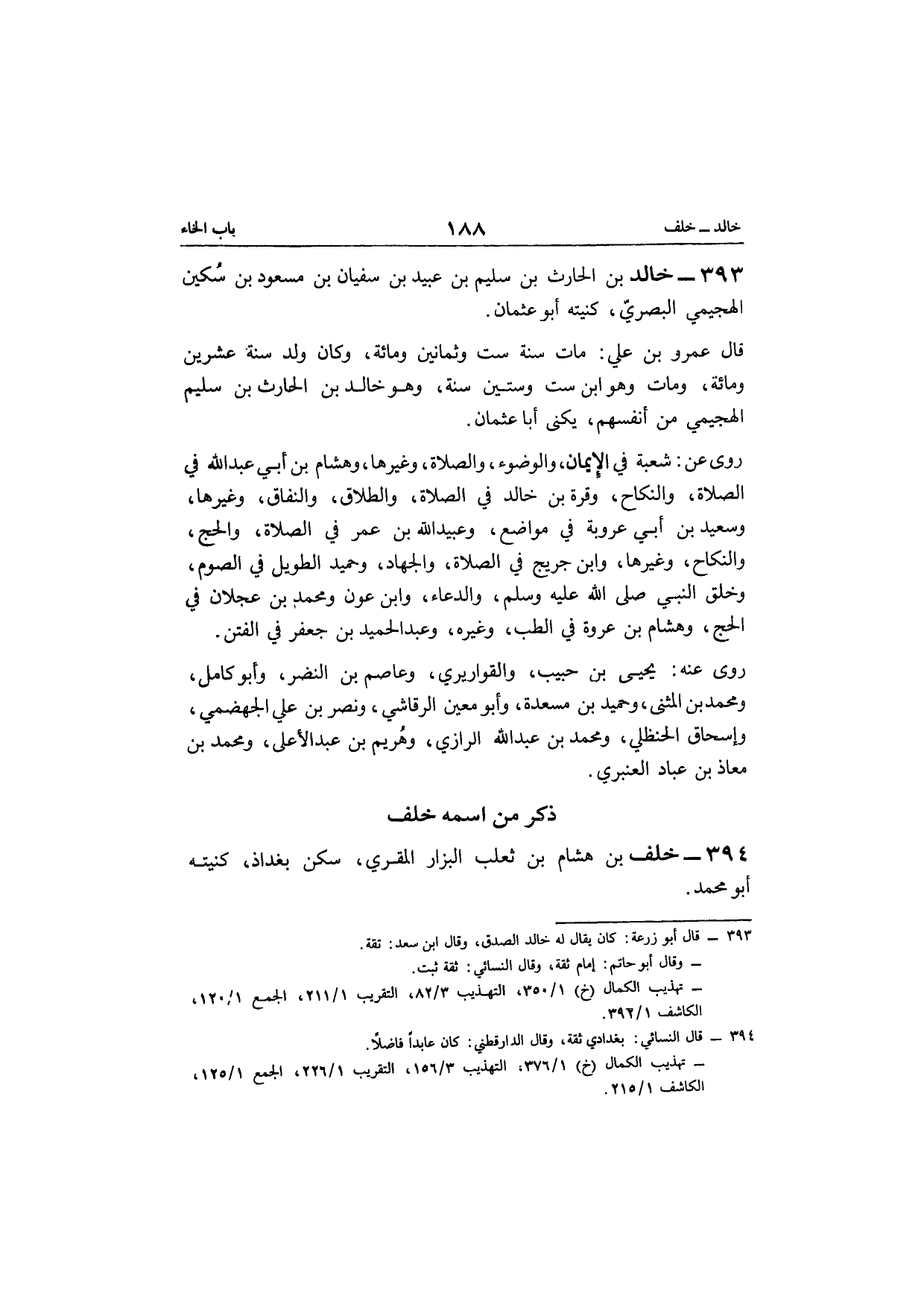 393 - خَالِد بن الحراث بن سليم بن عبيد بن سُفْيَان بن مَسْعُود بن سكين الهُجَيْمِي الْبَصْرِيّ كنيته أَبُو عُثْمَان