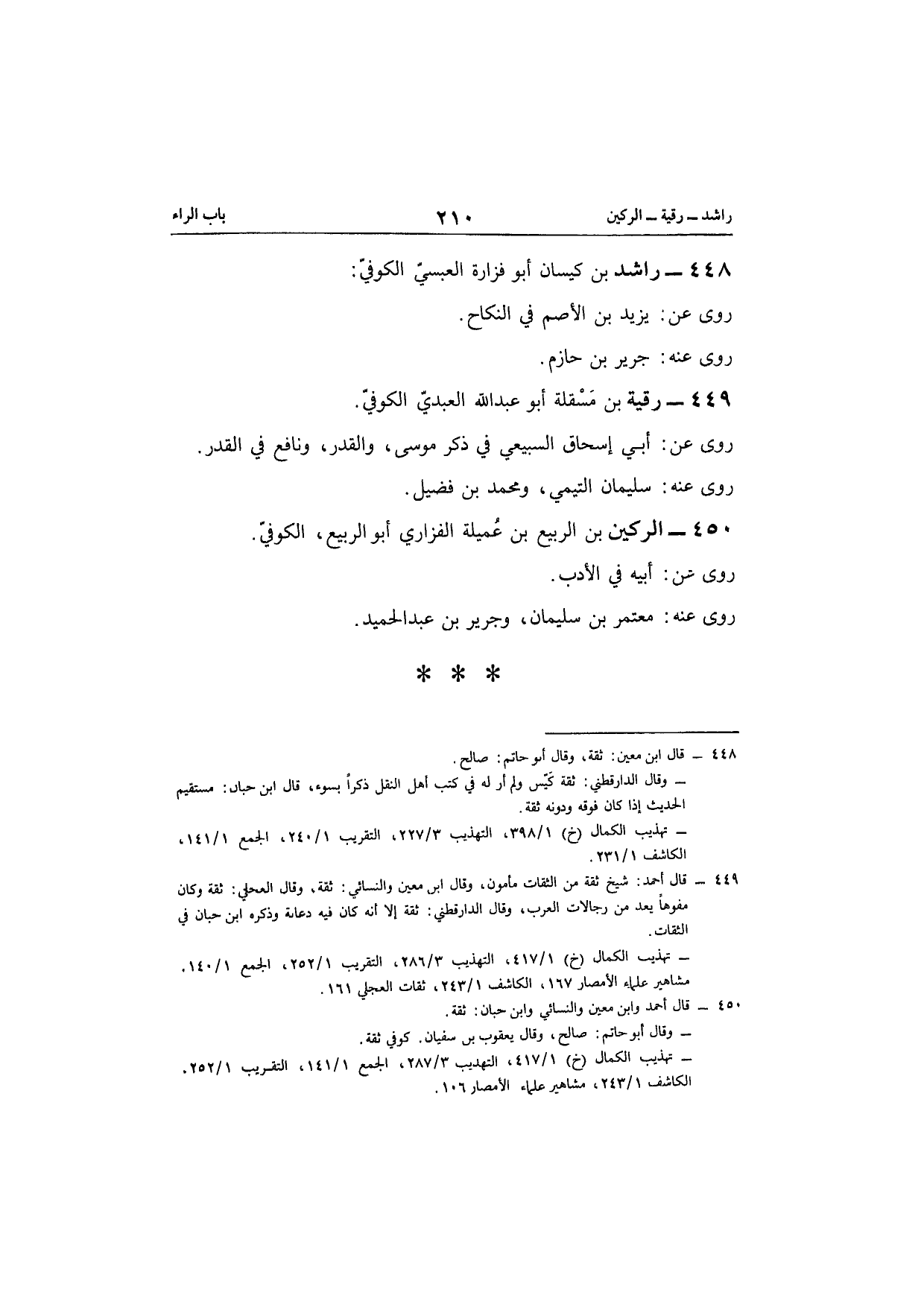 450 - الركين بن الرّبيع بن عميلة الْفَزارِيّ أَبُو الرّبيع الْكُوفِي