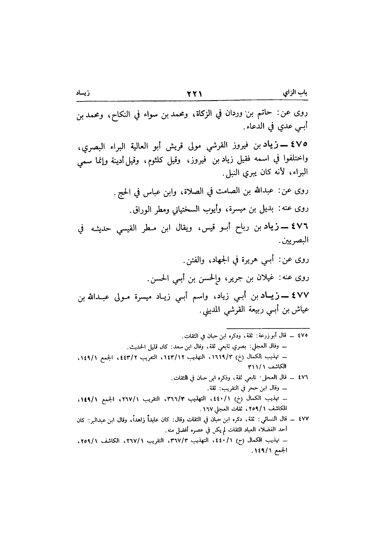 475 - زِيَاد بن فَيْرُوز الْقرشِي مولى قُرَيْش أَبُو الْعَالِيَة الْبَراء الْبَصْرِيّ وَاخْتلفُوا فِي اسْمه فَقيل زِيَاد بن فَيْرُوز وققيل كُلْثُوم وَقيل أدينة وَإِنَّمَا سمي الْبَراء لِأَنَّهُ كَانَ يبري النبل