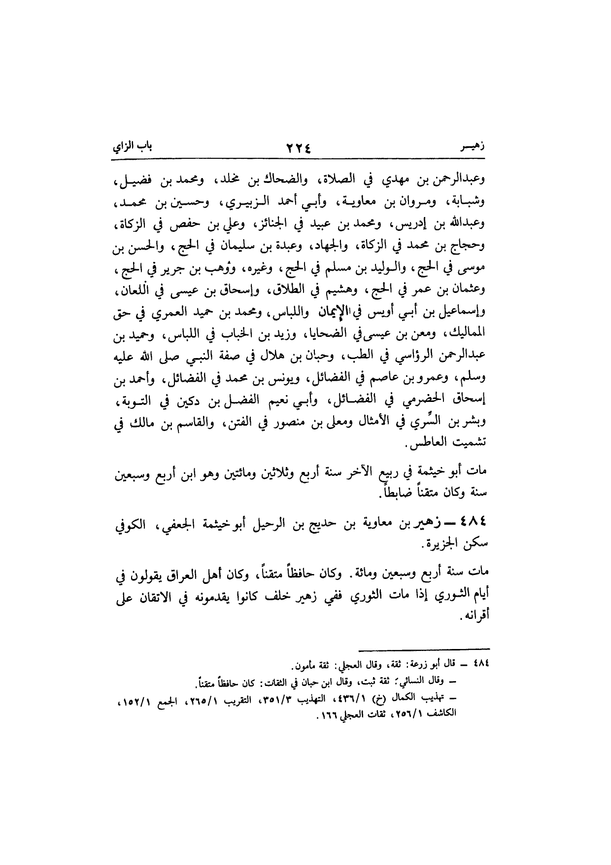 484 - زُهَيْر بن مُعَاوِيَة بن حديج بن الرحيل أَو خَيْثَمَة الْجعْفِيّ الْكُوفِي سكن الجزيرة