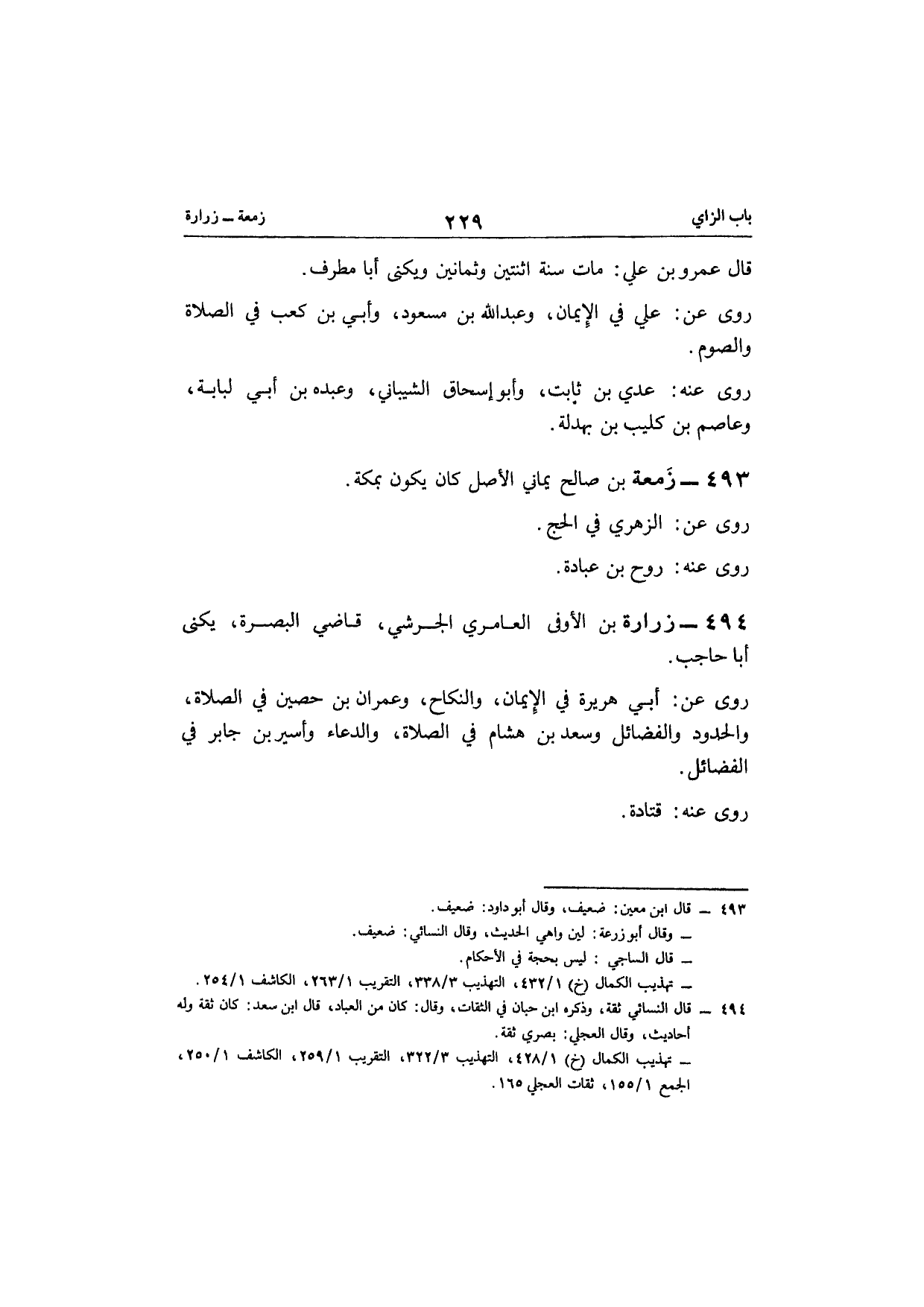 494 - زُرَارَة بن الأوفى العامري الجرشِي قَاضِي الْبَصْرَة يكنى أَبَا حَاجِب