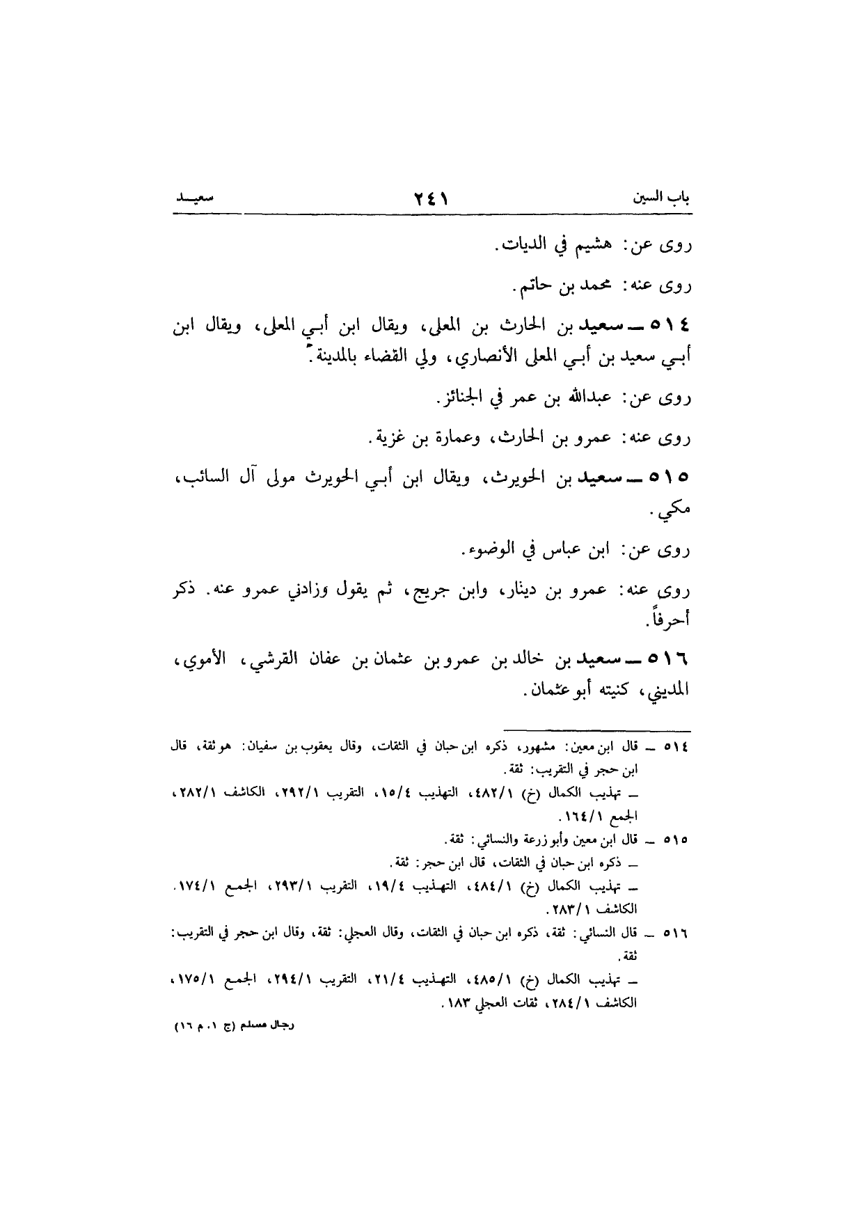 516 - سعيد بن خَالِد بن عَمْرو بن عُثْمَان بن عَفَّان الْقرشِي الْأمَوِي الْمَدِينِيّ كنيته أَبُو عُثْمَان