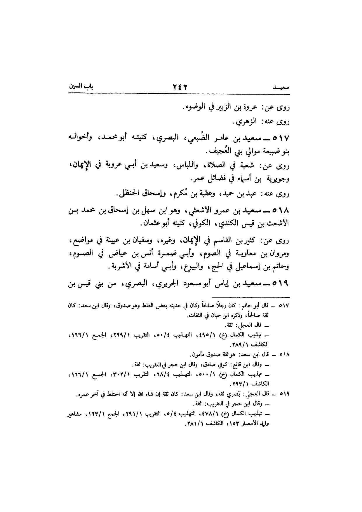 519 - سعيد بن إِيَاس أَبُو مَسْعُود الْجريرِي الْبَصْرِيّ من بني قيس بن