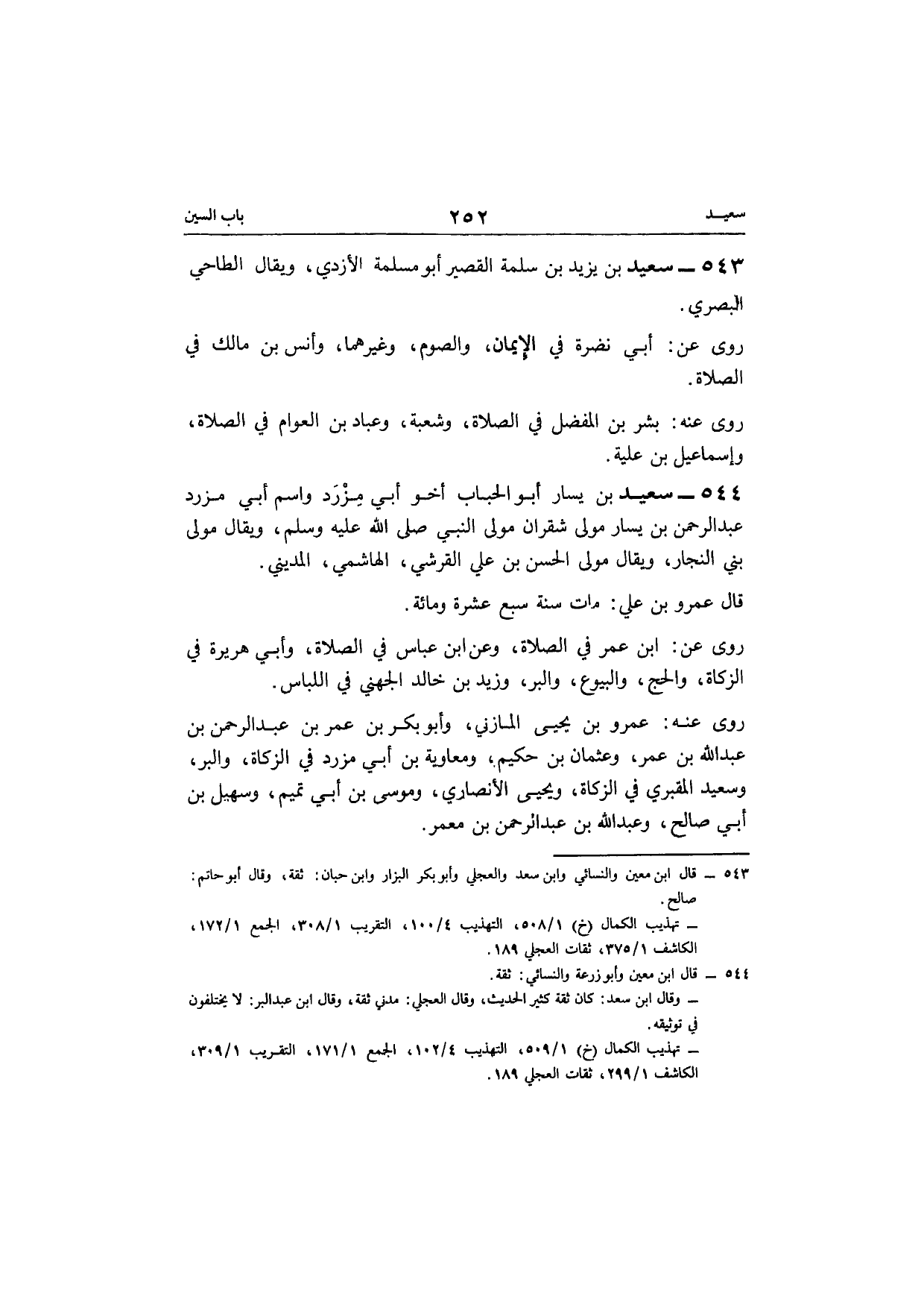 543 - سعيد بن يزِيد بن سَلمَة الْقصير أَبُو مسلمة الْأَزْدِيّ وَيُقَال الطَّاحِي الْبَصْرِيّ