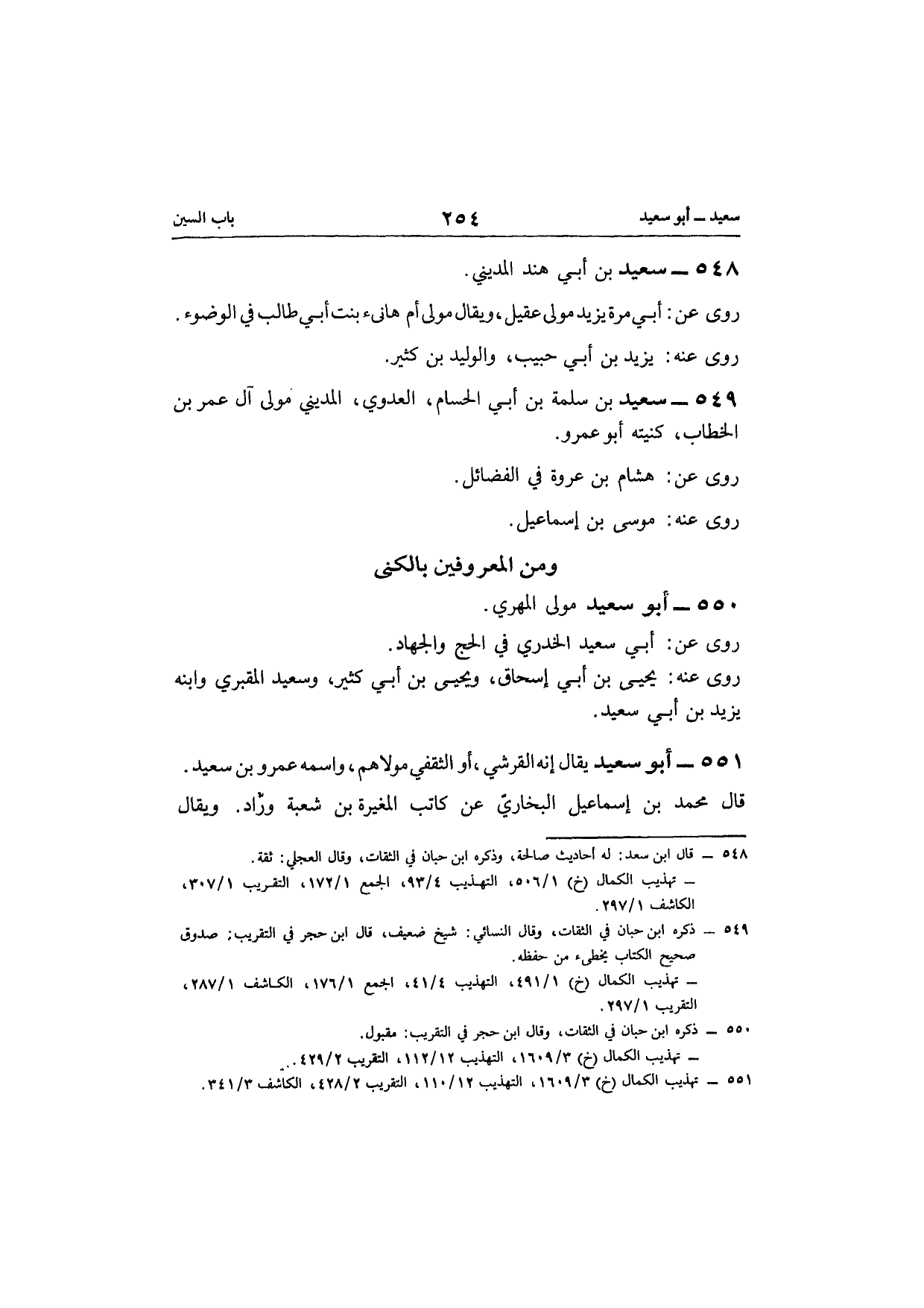 551 - أَبُو سعيد يُقَال إِنَّه الْقرشِي أَو الثَّقَفِيّ مَوْلَاهُم واسْمه عَمْرو بن سعيد قَالَ مُحَمَّد بن إِسْمَاعِيل البُخَارِيّ عَن كَاتب الْمُغيرَة بن شُعْبَة وراد وَيُقَال أَبُو سعيد الشَّامي عَن وراد مولى الْمُغيرَة فِي الصَّلَاة