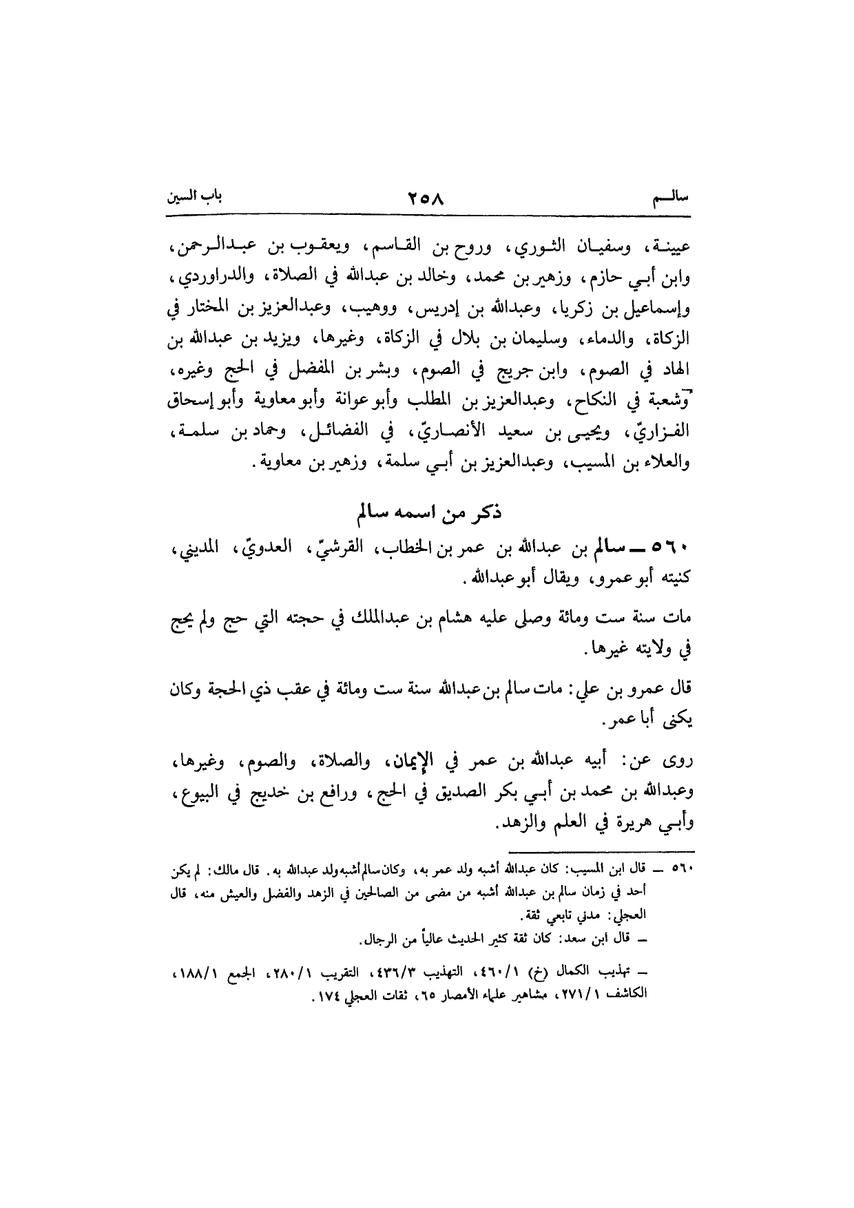 560 - سَالم بن عبد الله بن عمر بن الْخطاب الْقرشِي الْعَدوي الْمَدِينِيّ كنيته أَبُو عَمْرو وَيُقَال أَبُو عبد الله