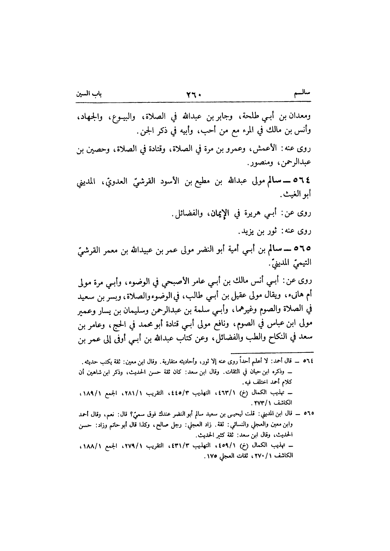 564 - سَالم مولى عبد الله بن مُطِيع بن الْأسود الْقرشِي الْعَدوي الْمَدِينِيّ أَبُو الْغَيْث