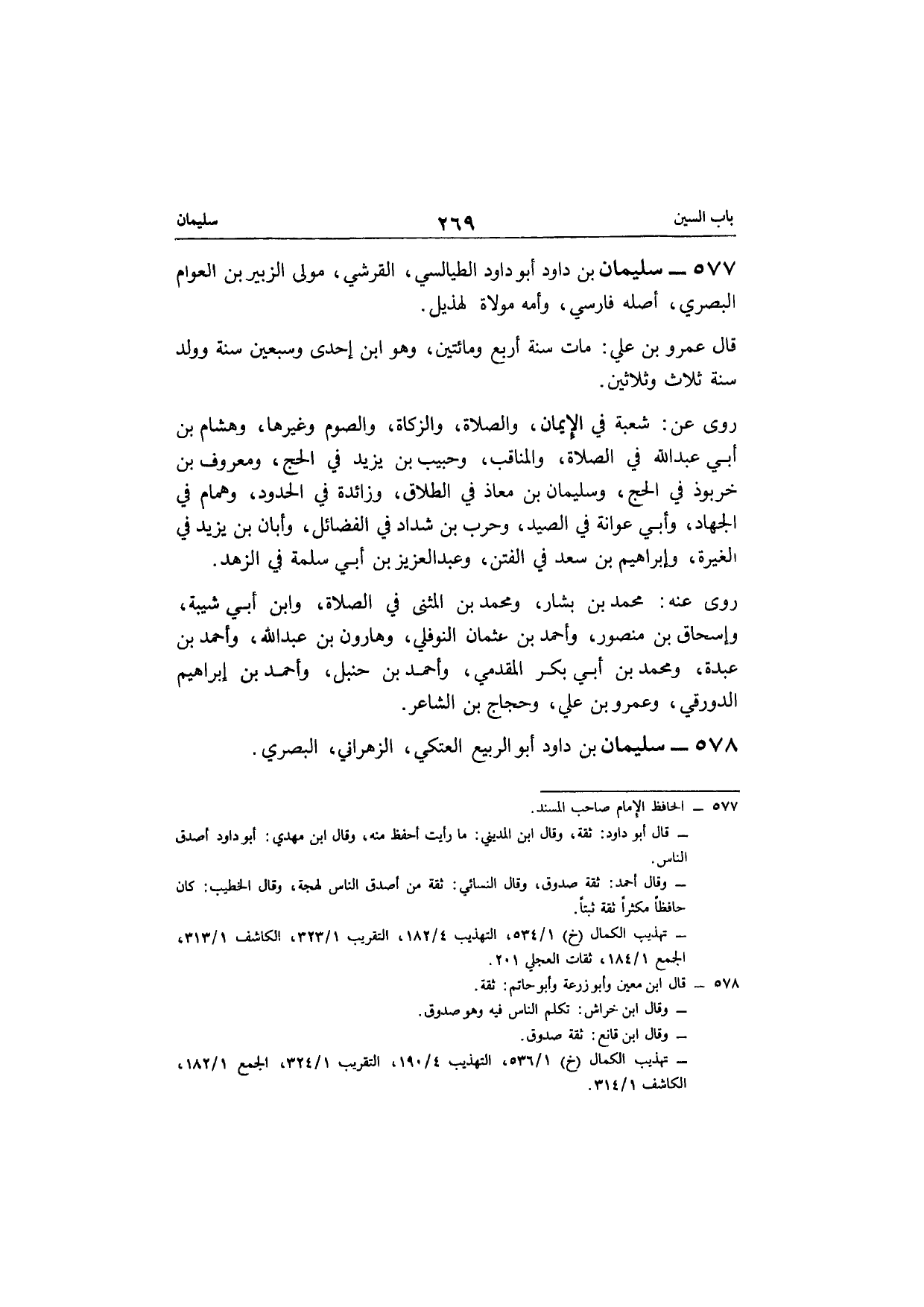 577 - سُلَيْمَان بن دَاوُد أَبُو دَاوُد الطَّيَالِسِيّ الْقرشِي مولى الزبير بن الْعَوام الْبَصْرِيّ أَصله فَارسي وَأمه مولاة لهذيل