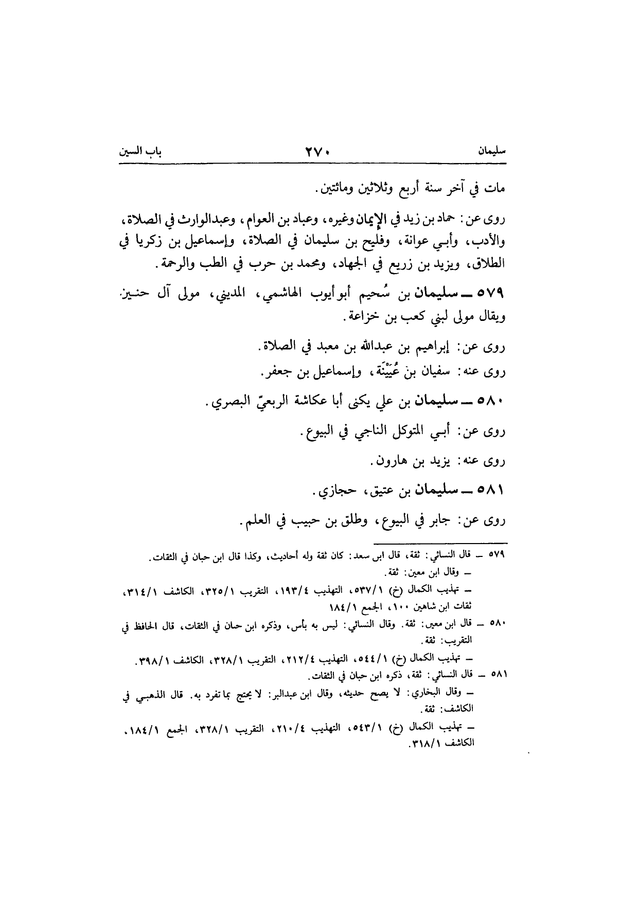 579 - سُلَيْمَان بن سحيم أَبُو أَيُّوب الْهَاشِمِي الْمَدِينِيّ مولى آل حنين وَيُقَال مولى لبني كَعْب بن خُزَاعَة