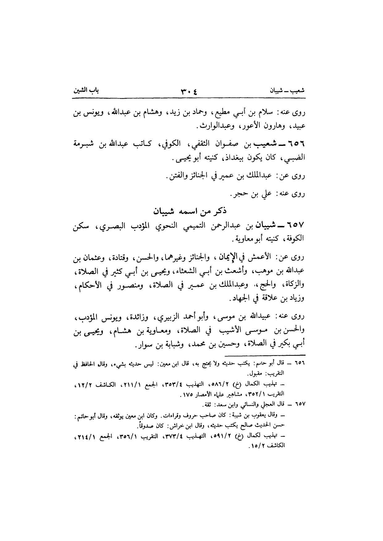 656 - شُعَيْب بن صَفْوَان الثَّقَفِيّ الْكُوفِي كَاتب عبد الله بن شبْرمَة الضَّبِّيّ كَانَ يكون ببغداذ كنيته أَبُو يحيى