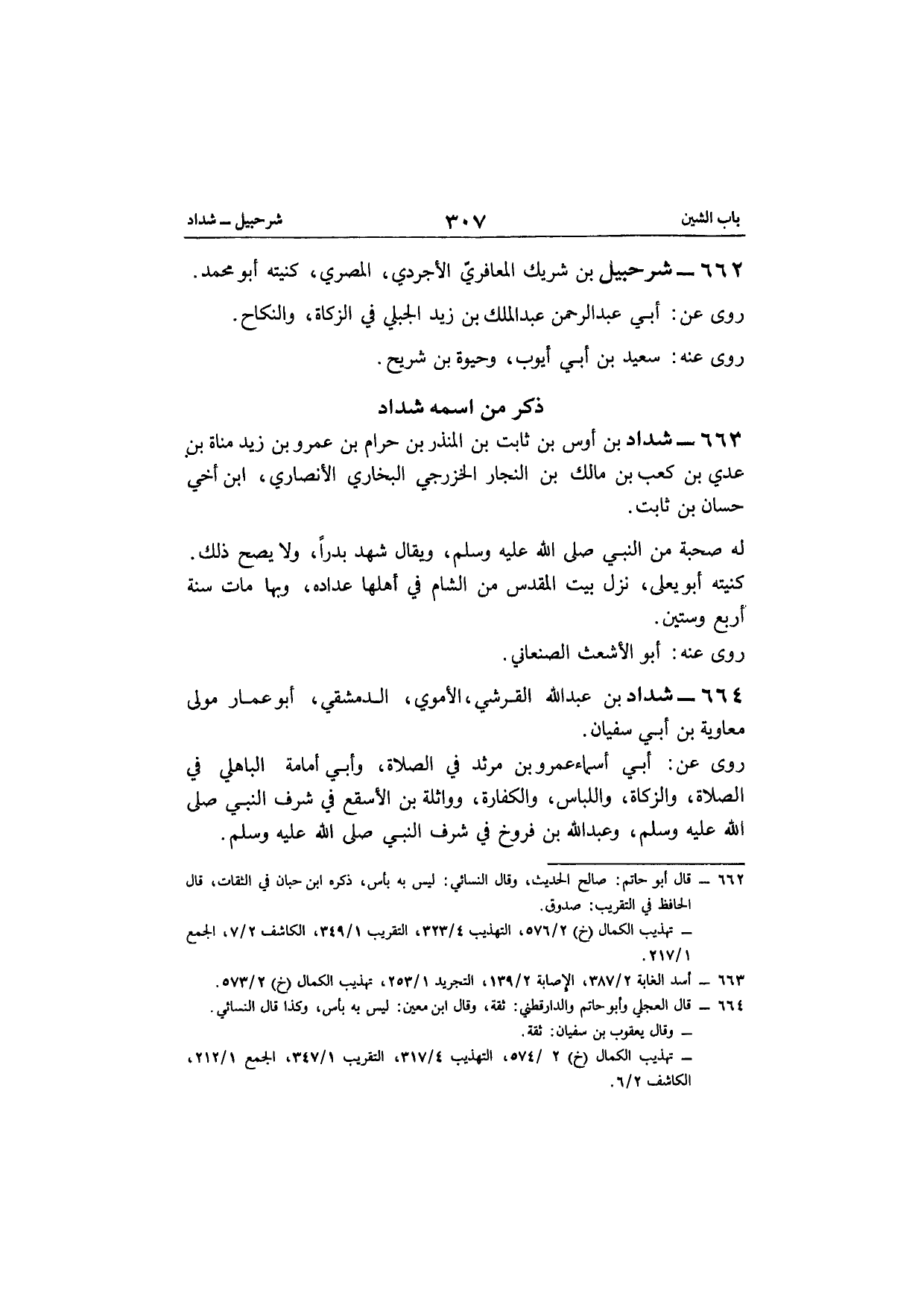 664 - شَدَّاد بن عبد الله الْقرشِي الْأمَوِي الدِّمَشْقِي أَبُو عمار مولى مُعَاوِيَة بن أبي سُفْيَان