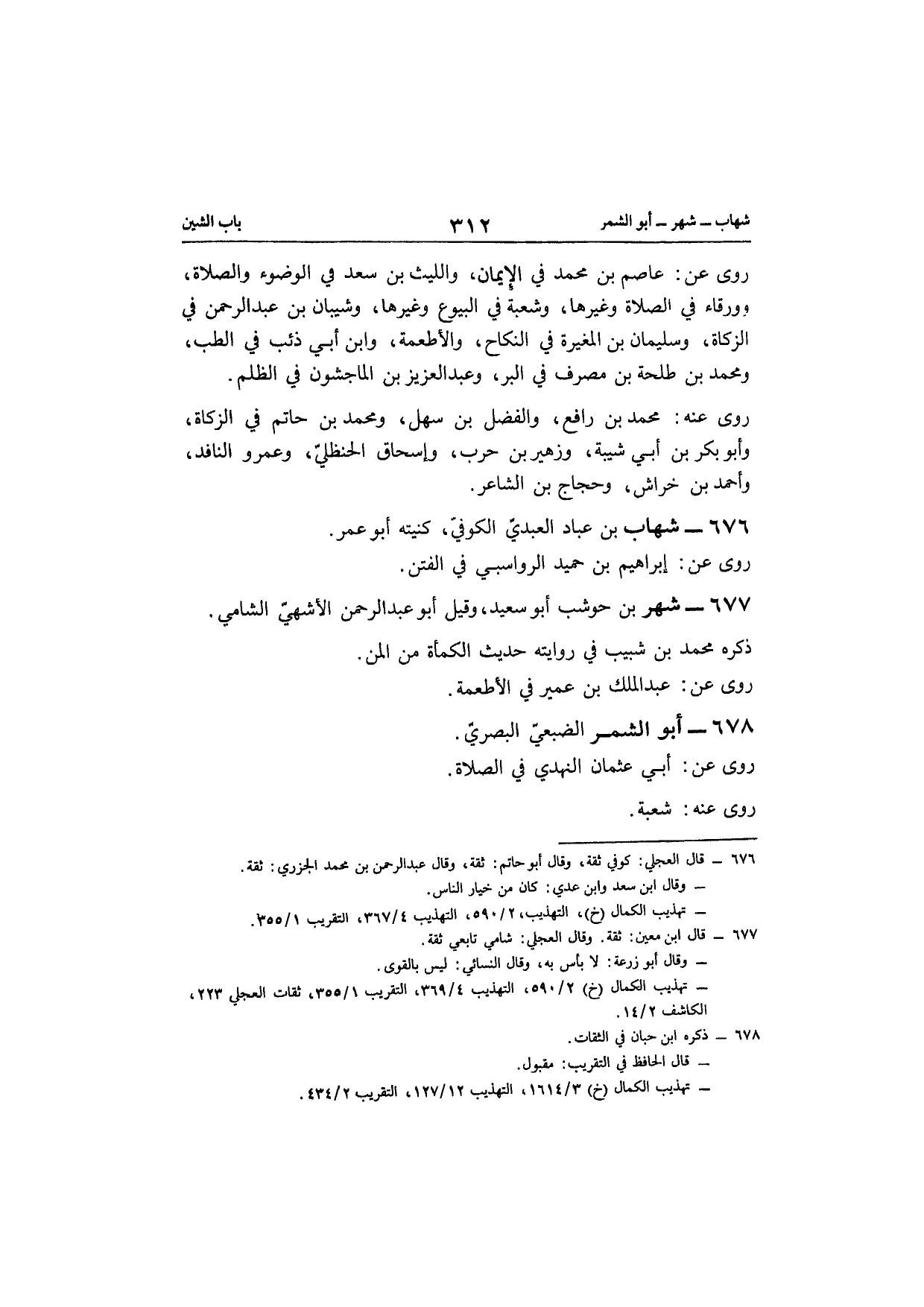 676 - شهَاب بن عباد الْعَبْدي الْكُوفِي كنيته أَبُو عمر