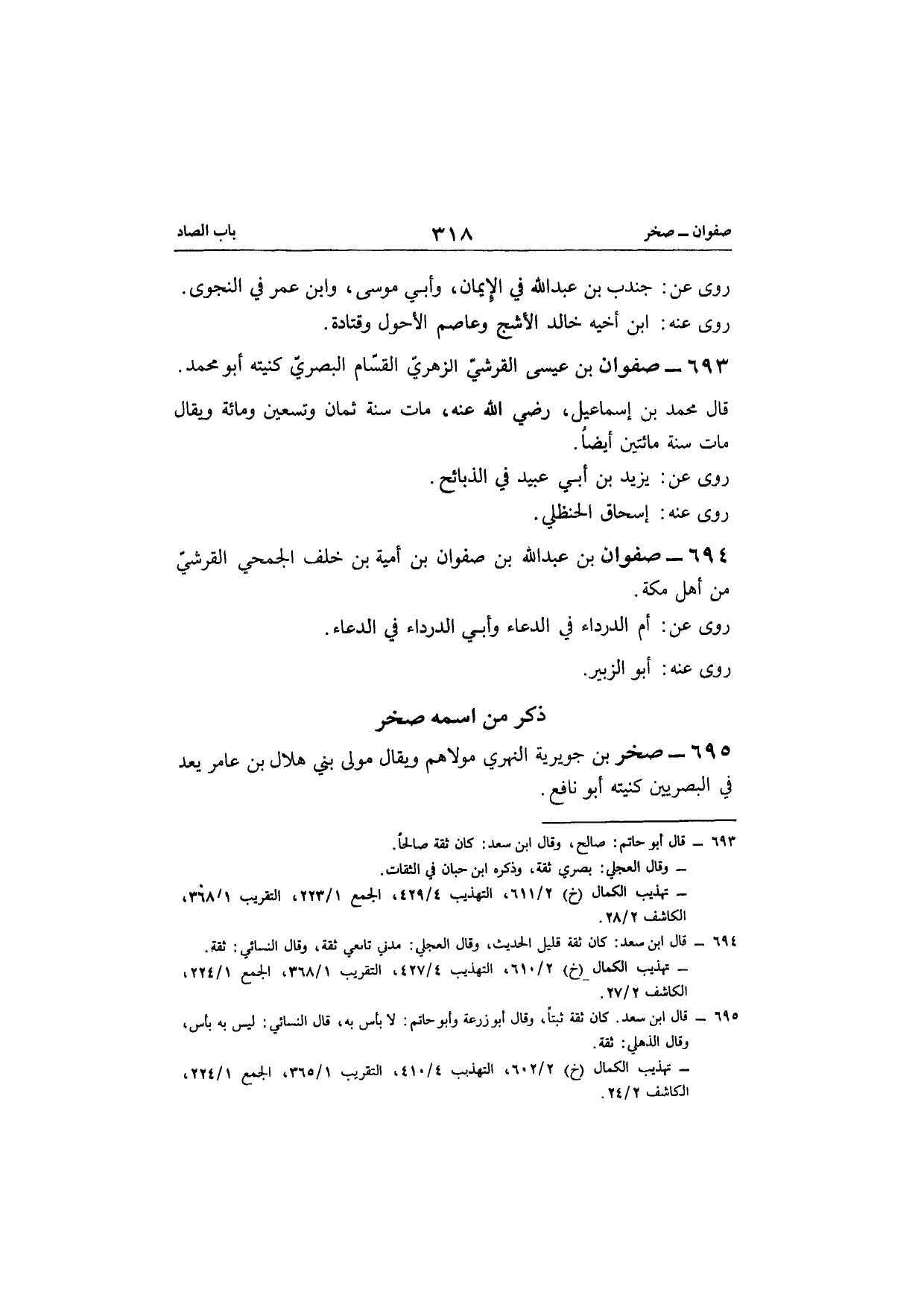 694 - صَفْوَان بن عبد الله بن صَفْوَان بن أُميَّة بن خلف الجُمَحِي الْقرشِي من أهل مَكَّة