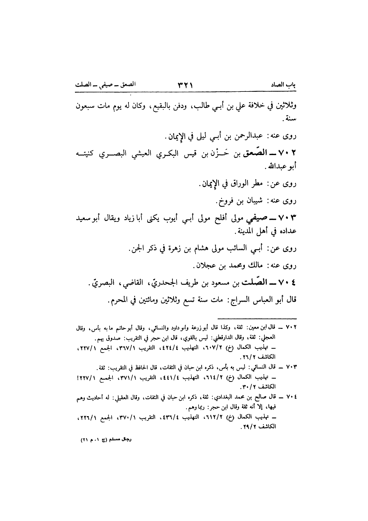 702 - الصَّعق بن حزن بن قيس الْبكْرِيّ العيشي الْبَصْرِيّ كنيته أَبُو عبد الله