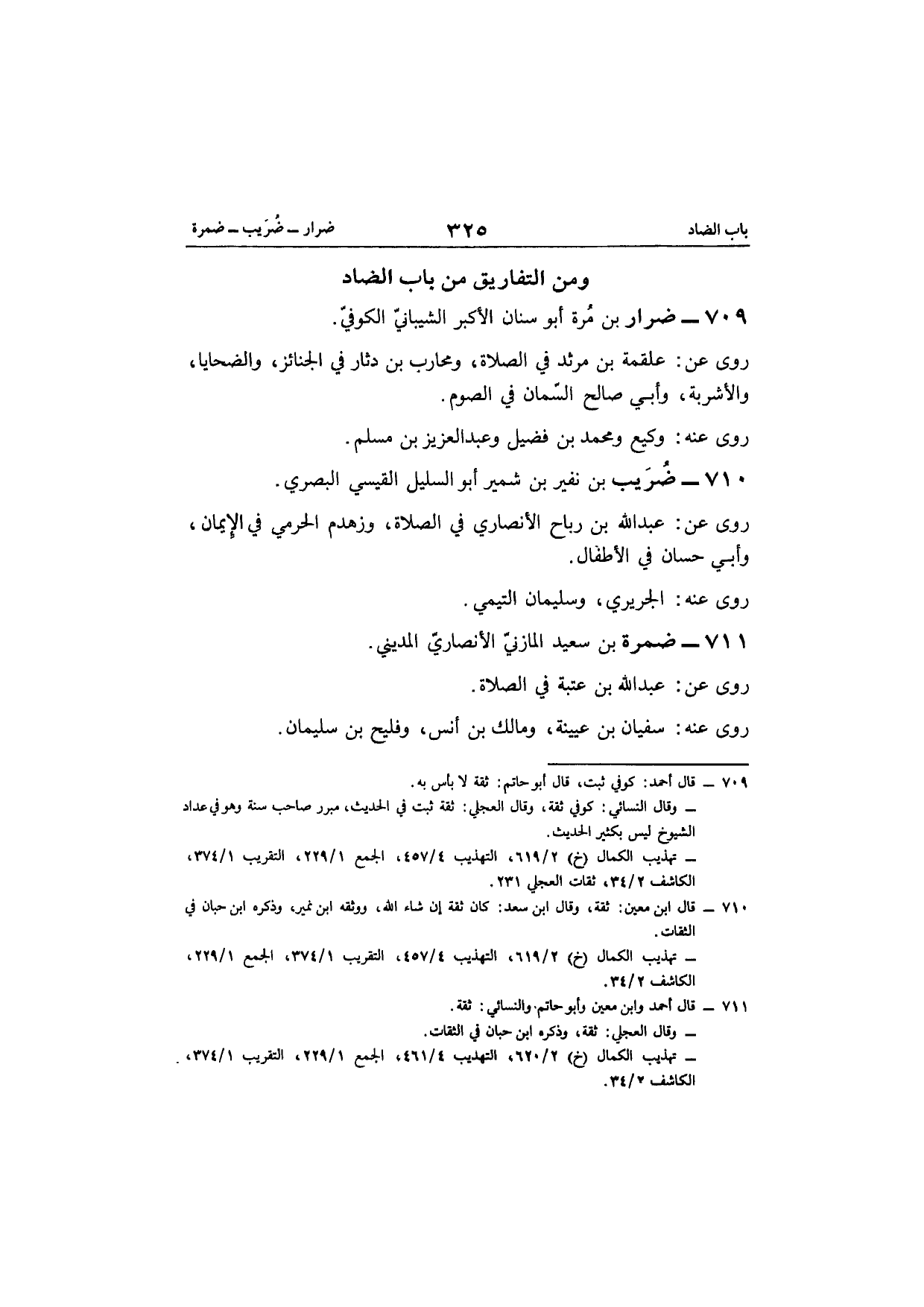 709 - ضرار بن مرّة أَبُو سِنَان الْأَكْبَر الشَّيْبَانِيّ الْكُوفِي