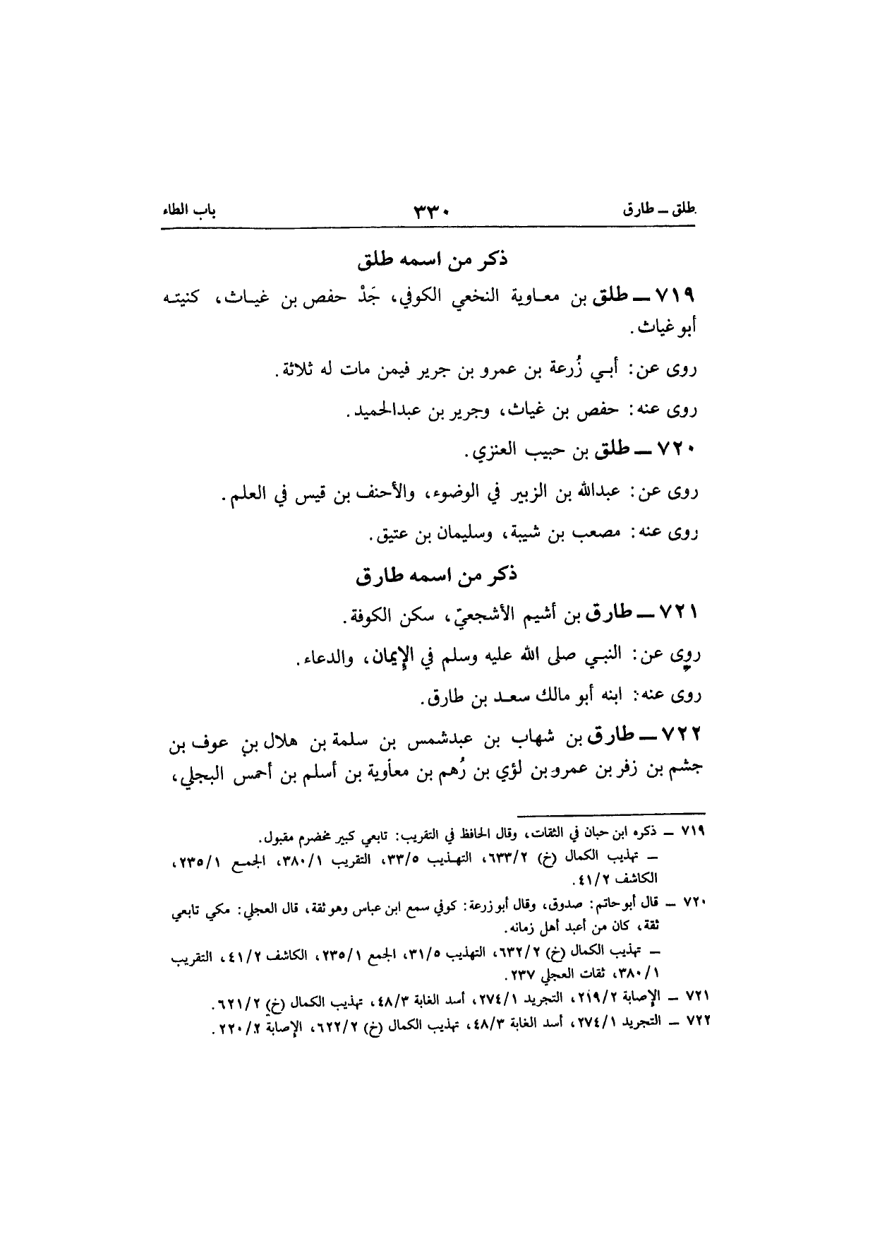 719 - طلق بن مُعَاوِيَة النَّخعِيّ الْكُوفِي جد حَفْص بن غياث كنيته أَبُو غياث