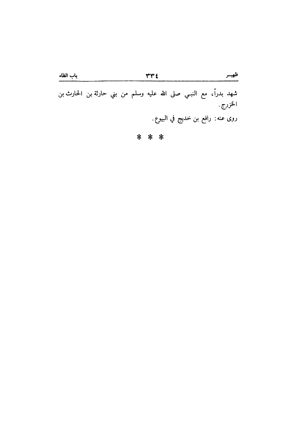 شهد بَدْرًا مَعَ النَّبِي صلى الله عَلَيْهِ وَسلم من بني حَارِثَة بن الْحَارِث بن الْخَزْرَج