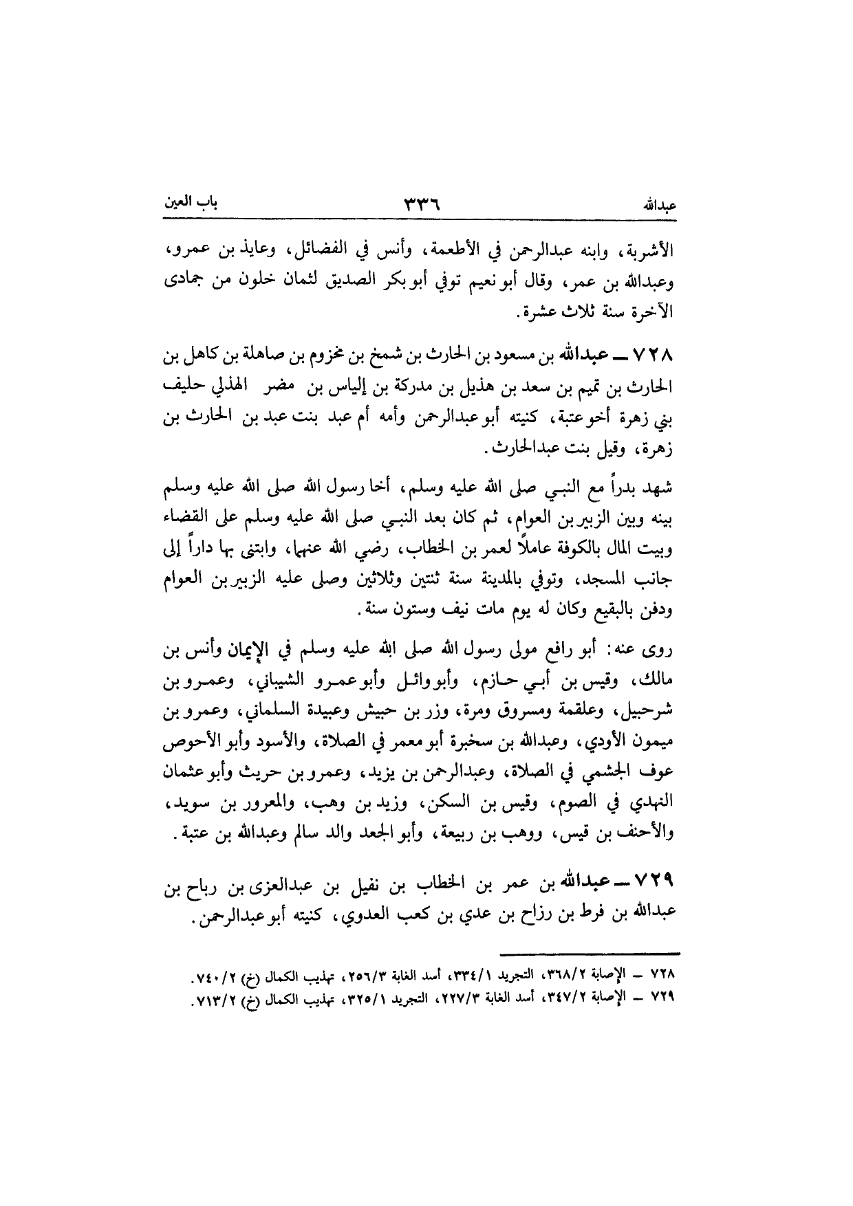 729 - عبد الله بن عمر بن الْخطاب بن نفَيْل بن عبد العزى بن رَبَاح بن عبد الله بن فرط بن رزاح بن عدي بن كَعْب الْعَدوي كنيته أَبُو عبد الرحمن