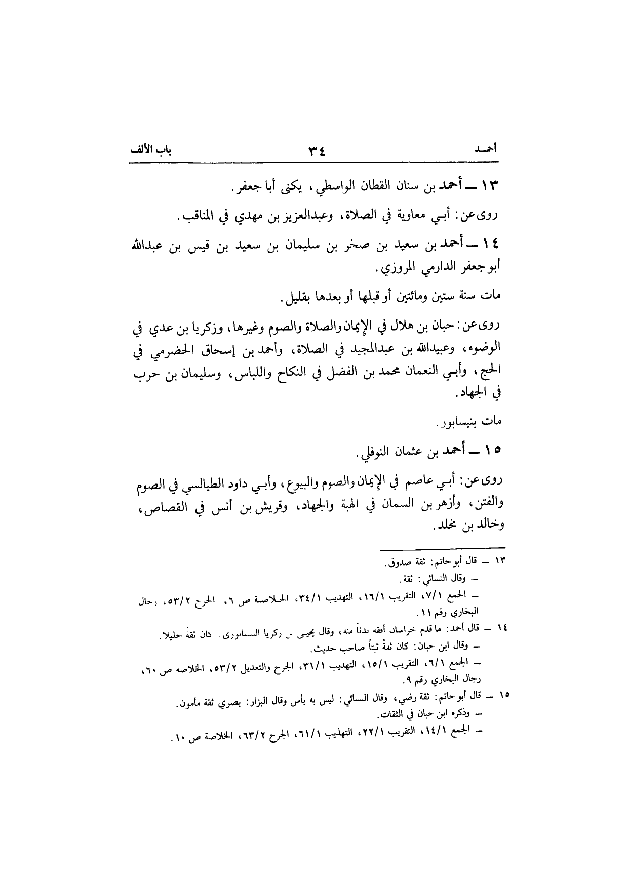 13 - أَحْمد بن سِنَان الْقطَّان الوَاسِطِيّ يكنى أَبَا جَعْفَر