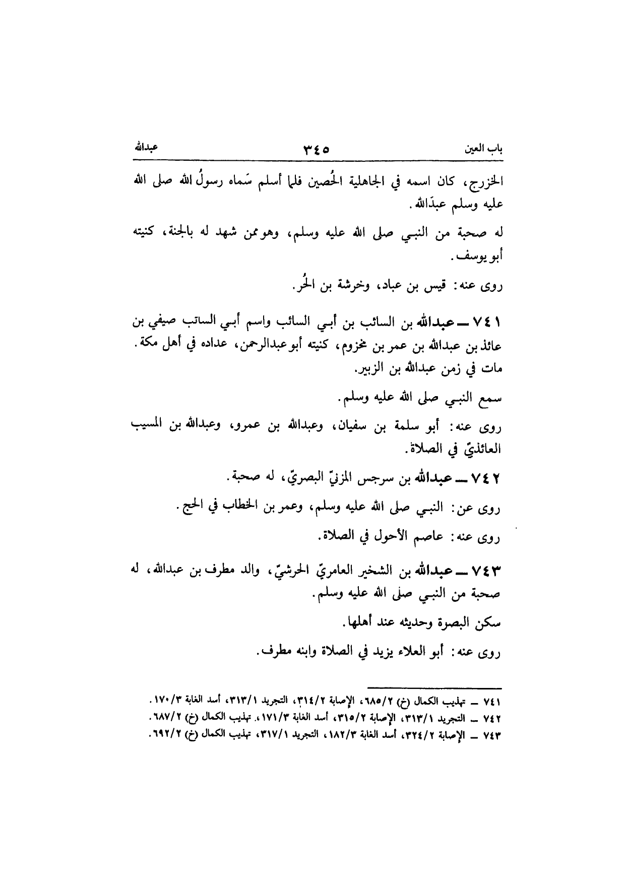 743 - عبد الله بن الشخير العامري الْحَرَشِي وَالِد مطرف بن عبد الله لَهُ صُحْبَة من النَّبِي صلى الله عَلَيْهِ وَسلم