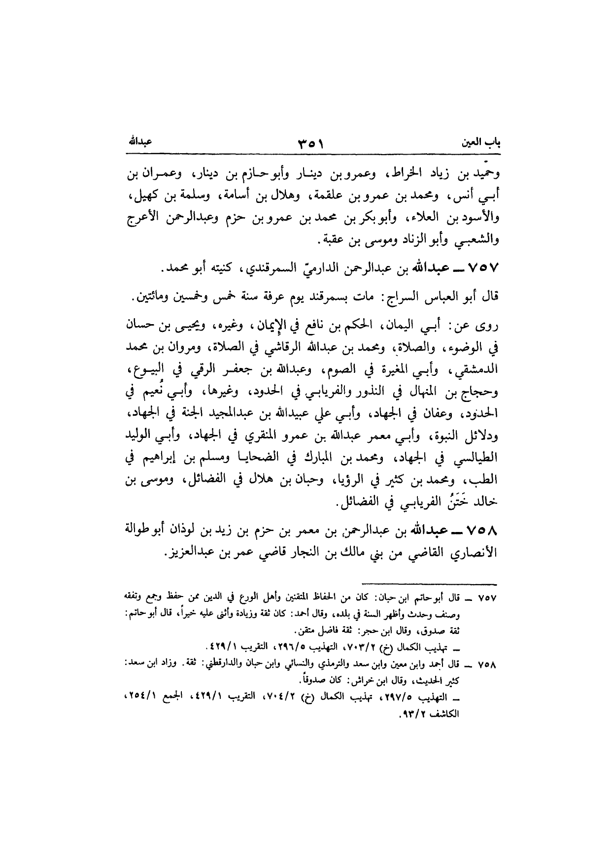 757 - عبد الله بن عبد الرحمن الدَّارمِيّ السَّمرقَنْدِي كنيته أَبُو مُحَمَّد