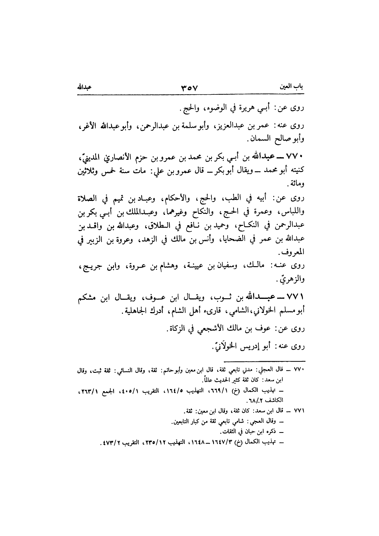 770 - عبد الله بن أبي بكر بن مُحَمَّد بن عَمْرو بن حزم الْأنْصَارِيّ الْمَدِينِيّ كنيته أَبُو مُحَمَّد وَيُقَال أَبُو بكر قَالَ عَمْرو بن عَليّ مَاتَ سنة خمس وَثَلَاثِينَ وَمِائَة