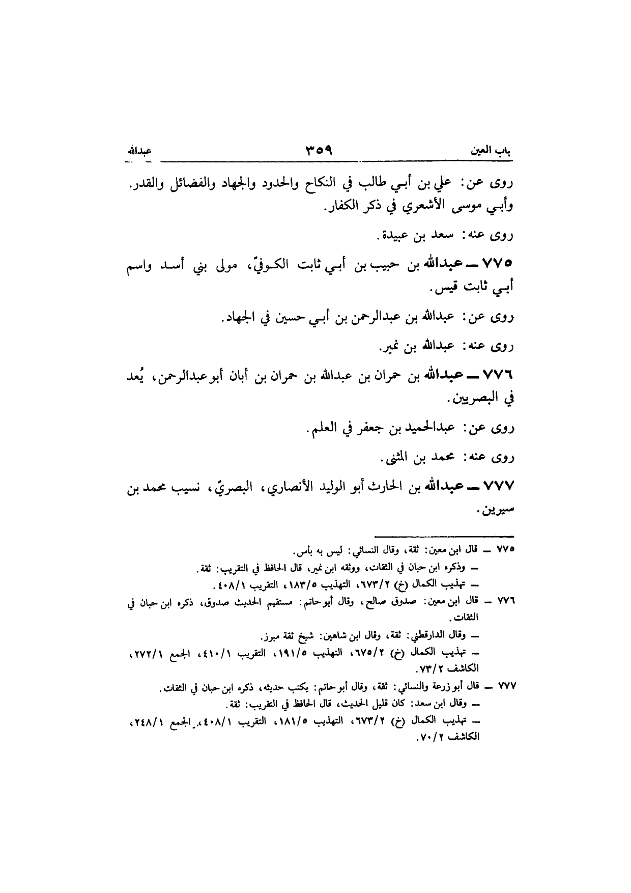 776 - عبد الله بن حمْرَان بن عبد الله بن حمْرَان بن أبان أَبُو عبد الرحمن يعد فِي الْبَصرِيين