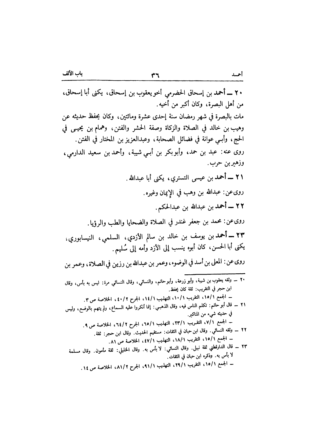 20 - أَحْمد بن اسحاق الْحَضْرَمِيّ أَخُو يَعْقُوب بن اسحاق يكنى أَبَا اسحاق من أهل الْبَصْرَة وَكَانَ أكبر من أَخِيه