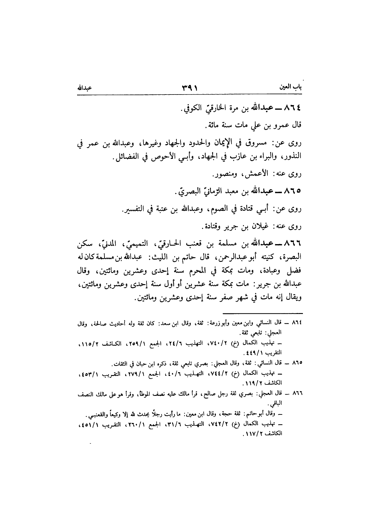 864 - عبد الله بن مرّة الخارقي الْكُوفِي