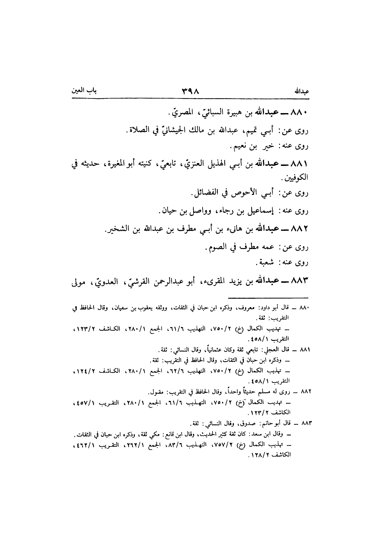 881 - عبد الله بن أبي الْهُذيْل الْعَنزي تَابِعِيّ كنيته أَبُو الْمُغيرَة حَدِيثه فِي الْكُوفِيّين