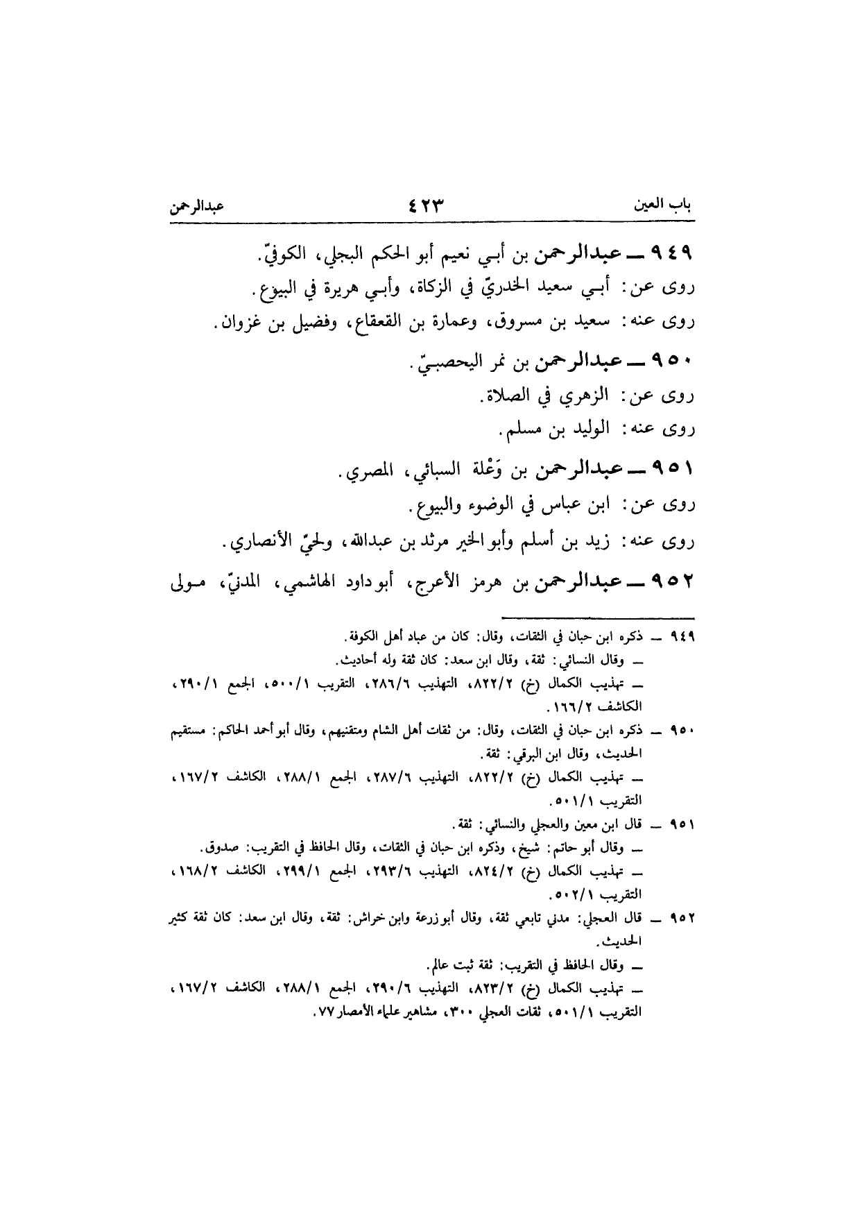 949 - عبد الرحمن بن أبي نعيم أَبُو الحكم البَجلِيّ الْكُوفِي