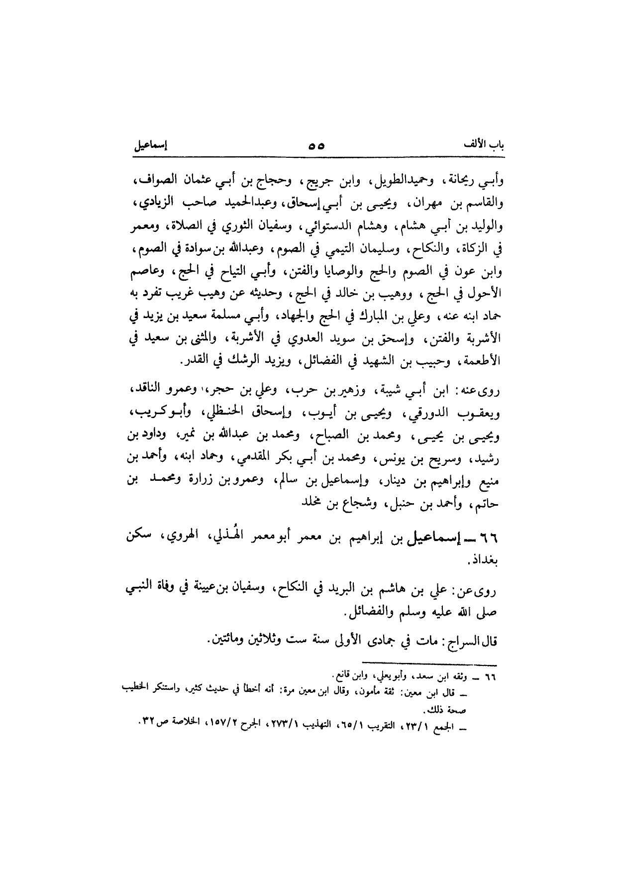 66 - إِسْمَاعِيل بن إِبْرَاهِيم بن معمر أَبُو معمر الْهُذلِيّ الْهَرَوِيّ سكن بغداذ