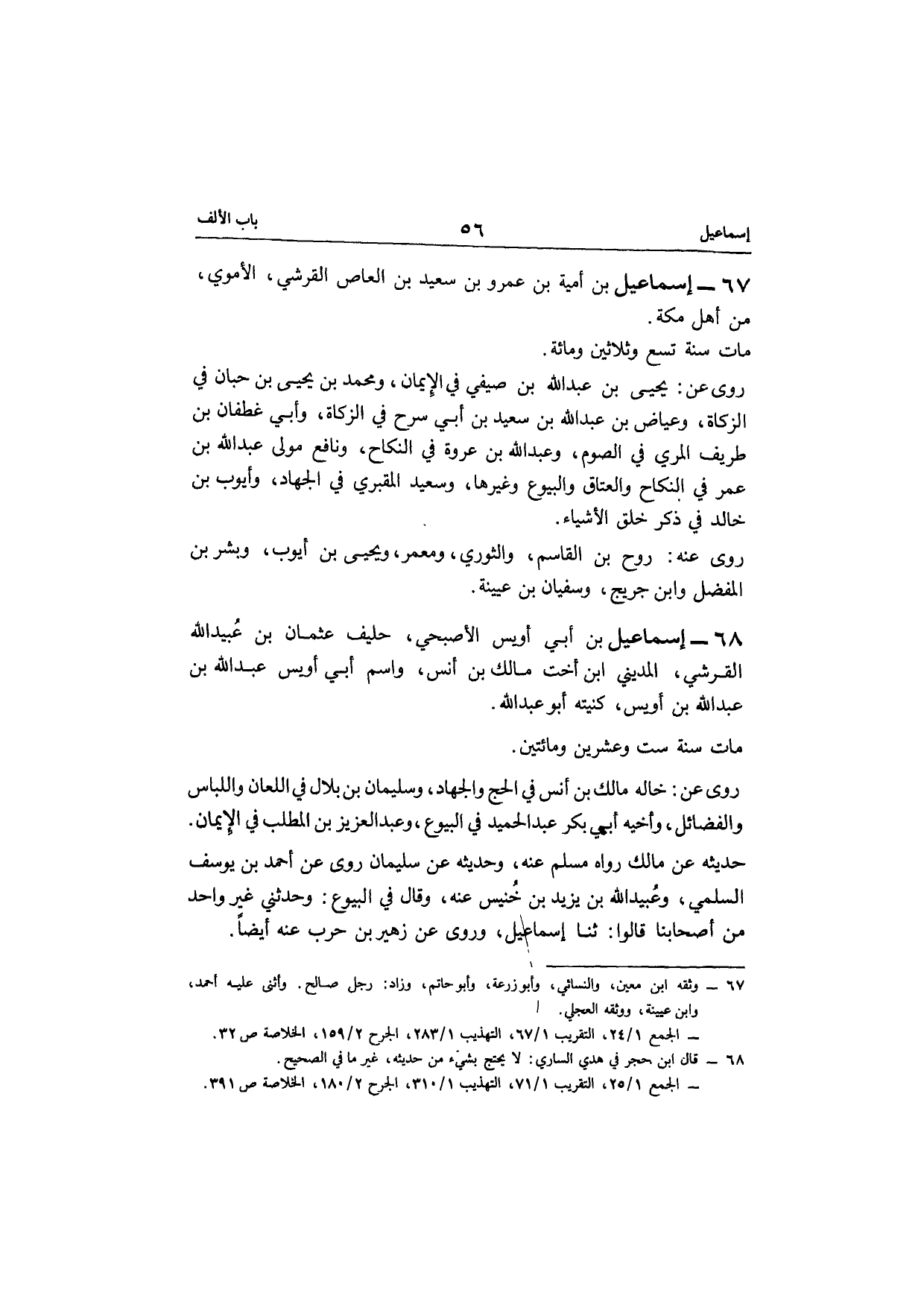 68 - إِسْمَاعِيل بن أبي أويس الأصبحي حَلِيف عُثْمَان بن عبيد الله الْقرشِي الْمَدِينِيّ ابْن أُخْت مَالك بن أنس وَاسم أبي أويس عبد الله بن عبد الله بن أويس كنيته أَبُو عبد الله