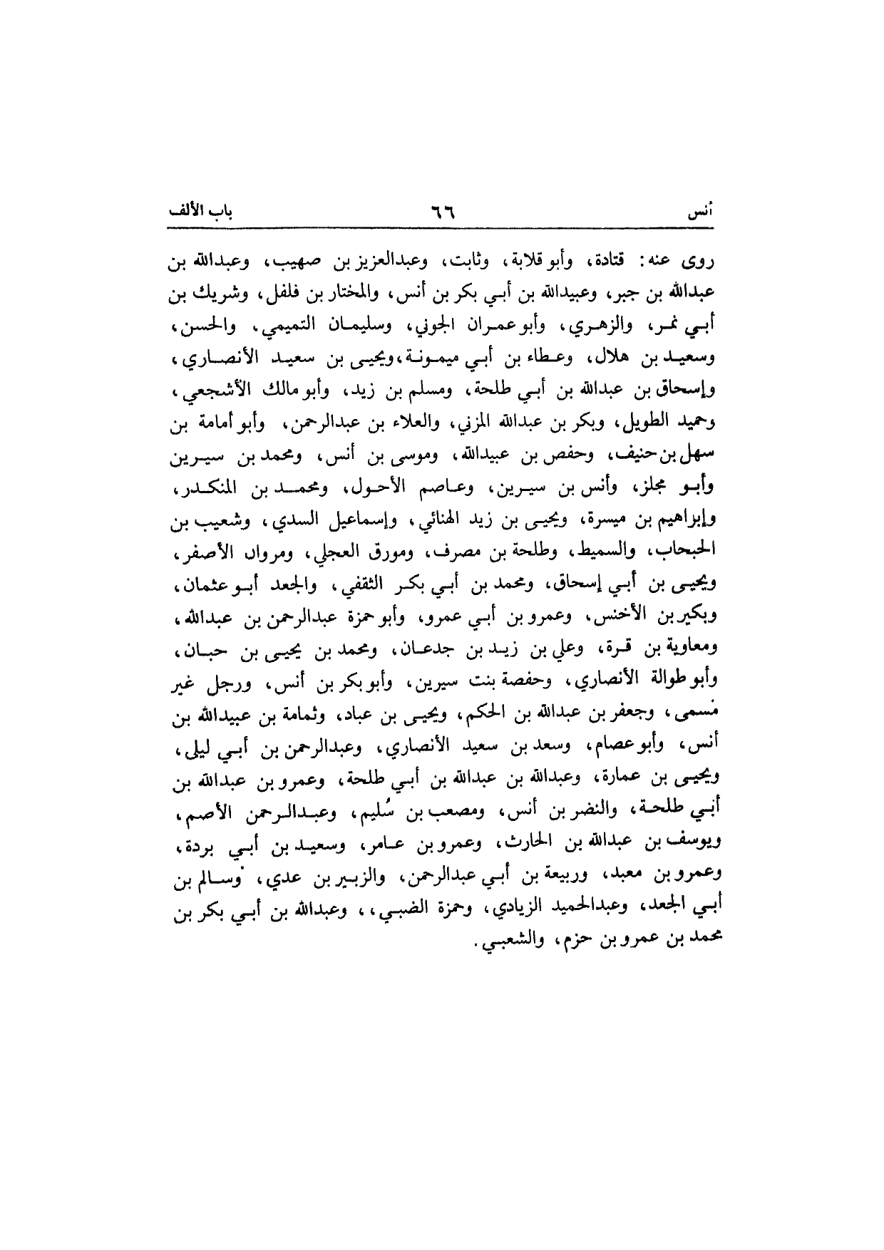 روى عَنهُ قَتَادَة وَأَبُو قلَابَة وثابت وعبد العزيز بن صُهَيْب وعبد الله بن جبر وعبيد الله بن أبي بكر بن أنس وَالْمُخْتَار بن فلفل وَشريك بن أبي نمر وَالزهْرِيّ وَأَبُو عمرَان الْجونِي وَسليمَان التَّمِيمِي وَالْحسن وَسَعِيد بن هِلَال وَعَطَاء بن أبي مَيْمُونَة وَيحيى بن سعيد الْأنْصَارِيّ وَإِسْحَاق بن عبد الله بن أبي طَلْحَة وَمُسلم بن زيد وَأَبُو مَالك الْأَشْجَعِيّ وَحميد الطَّوِيل وَبكر بن عبد الله الْمُزنِيّ والْعَلَاء بن عبد الرحمن وَأَبُو أُمَامَة بن سهل بن حنيف وَحَفْص بن عبيد الله ومُوسَى بن أنس وَمُحَمّد بن سِيرِين وَأَبُو مجلز وَأنس بن سِيرِين وَعَاصِم الْأَحول وَمُحَمّد بن الْمُنْكَدر وَإِبْرَاهِيم بن ميسرَة وَيحيى بن زيد الْهنائِي وَإِسْمَاعِيل السّديّ وَشُعَيْب بن الحبحاب والسميد وَطَلْحَة بن مصرف ومورق الْعجلِيّ ومروان الْأَصْفَر وَيحيى بن أبي إِسْحَاق وَمُحَمّد بن أبي بكر الثَّقَفِيّ والجعد أَبُو عُثْمَان وَبُكَيْر بن الْأَخْنَس وَعَمْرو بن أبي عَمْرو وَأَبُو حَمْزَة عبد الرحمن بن عبد الله وَمُعَاوِيَة بن قُرَّة وَعلي بن زيد بن جدعَان وَمُحَمّد بن يحيى بن حبَان وَأَبُو طوالة الْأنْصَارِيّ وَحَفْصَة بنت سِيرِين وَأَبُو بكر بن أنس وَرجل غير مُسَمّى وجعفر بن عبد الله بن الحكم وَيحيى بن عباد وثمامة بن عبيد الله بن أنس وَأَبُو عِصَام وَسعد بن سعيد الْأنْصَارِيّ وعبد الرحمن بن أبي ليلى وَيحيى بن عمَارَة وعبد الله بن عبد الله بن أبي طَلْحَة وَعَمْرو بن عبد الله بن أبي طَلْحَة وَالنضْر بن أنس وَمصْعَب بن سليم وعبد الرحمن الْأَصَم ويوسف بن عبد الله بن الْحَارِث وَعَمْرو بن عَامر وَسَعِيد بن أبي بردة وَعَمْرو بن معبد وَرَبِيعَة بن أبي عبد الرحمن وَالزُّبَيْر بن عدي وَسَالم بن أبي الْجَعْد وعبد الحميد الزيَادي وَحَمْزَة الضَّبِّيّ وعبد الله بن أبي بكر بن مُحَمَّد بن عَمْرو بن حزم وَالشعْبِيّ